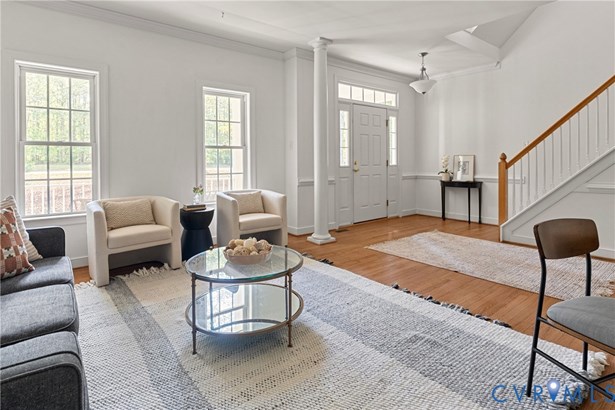 GORGEOUS RENOVATIONS! FRESH PAINT AND CARPET THROUGHOUT, REFINISHED HW FLOORS, QUARTZ COUNTERS, SS APPLIANCES. A dream home nestled on 9+acres in a well-maintained neighborhood. Beautifully landscaped property features a quiet lot with mature tees trees and professional landscaping, offering privacy and natural beauty. Inside find 9-foot ceilings and hardwood floors through the 1st level creating a warm and welcoming ambience. Custom details include arched doorways, extensive trim work and vaulted ceilings. Multiple areas for family time, entertaining or space to relax. Entertain in a formal living and dining room, seamlessly connected by a butlers pantry with quartz counters, adding style and function. The heart is the expansive great room featuring a wall of windows and fireplace opening to a paver patio, making indoor-outdoor living a breeze. The large kitchen is a chef's dream offering abundant cabinet and counter space, quartz counters, an under mount sink with new faucet, stainless appliances, double oven, a center island and large pantry. Informal dining area and open concept design connects the kitchen to family room, perfect for hosting or every day living. 5 spacious bedrooms, including primary suites on both levels, perfect for multi-generational living or added convenience. First floor primary with walk in shower and walk in closet. Second floor primary boasts 2 walk in closets, large en-suite with walk in shower, soaking tub, dual vanity and private toilet. Three additional bedrooms share a large hall bath with dual vanity, private tub/shower combo and toilet. Enjoy timeless appeal of a classic farmhouse front porch, ideal for morning coffee or relaxing evenings with peaceful views of the wooded lot. Extras include a walk up attic for future expansion potential, accessed from the 2nd floor hall, and oversized 2.5 car garage. Easy access to I-64 making commuting a breeze, equi-distance from Charlottesville and Richmond. A perfect blend of country living with modern amenities and convenience.