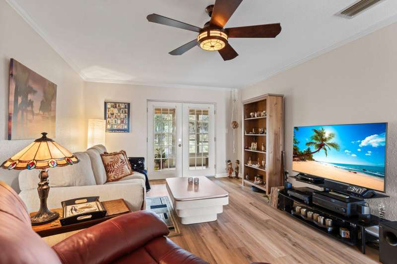 South Hutchinson Island 2 Bedroom/2 Bath condo in The Colonnades. Active 55+ Community. Kitchen features granite counter tops, newer cabinets & pantry. Laminate flooring in living room, dining room, kitchen. Upgraded Baths. Large Master Bedroom with ensuite full Bath. French Doors to spacious Florida room with lovely Garden view. Crown molding throughout. New roof Dec. 2024, 20 yr. Warranty. Furnishings negotiable. The Colonnades amenities include a beautiful Clubhouse, Olympic Pool, Tennis, Boat Docks, Dry Storage for extra toys & more. Walk to Beach, Shops, Restaurants. Relaxed Island living, full time or seasonal.