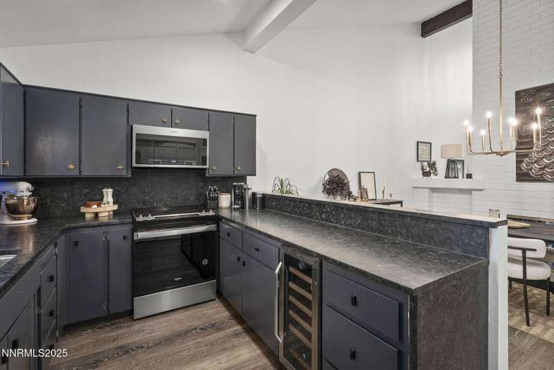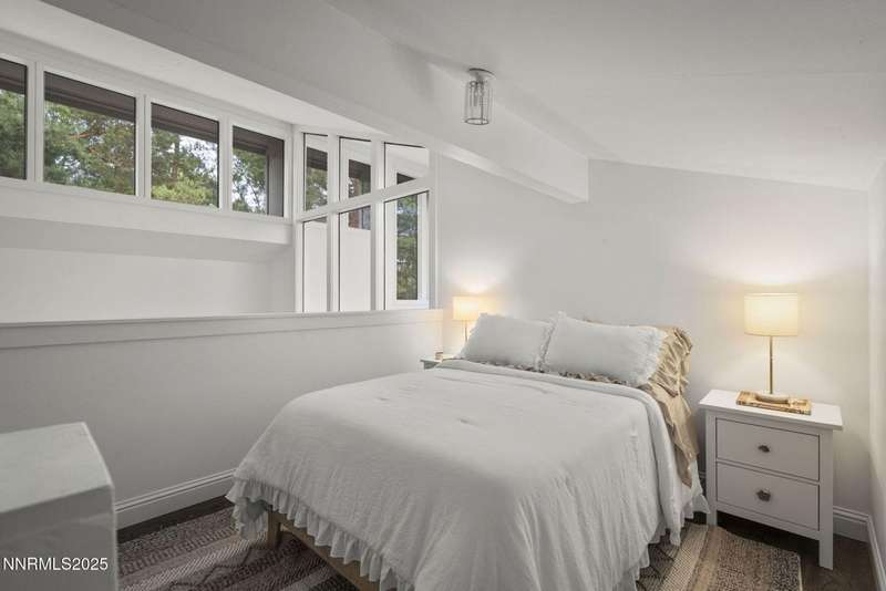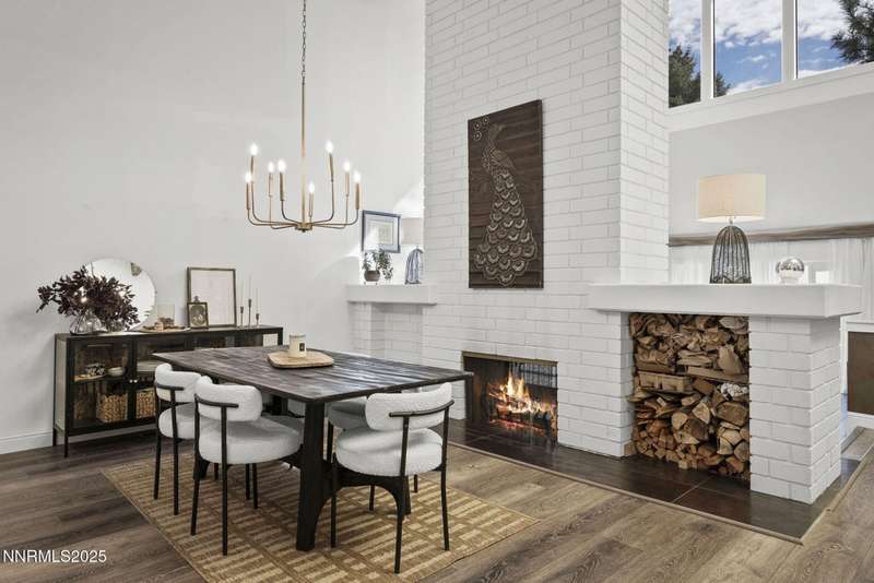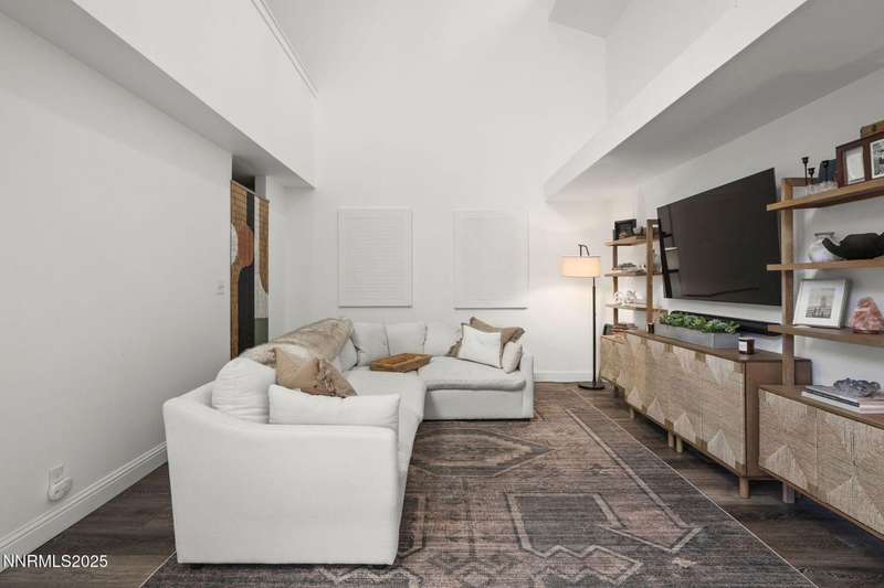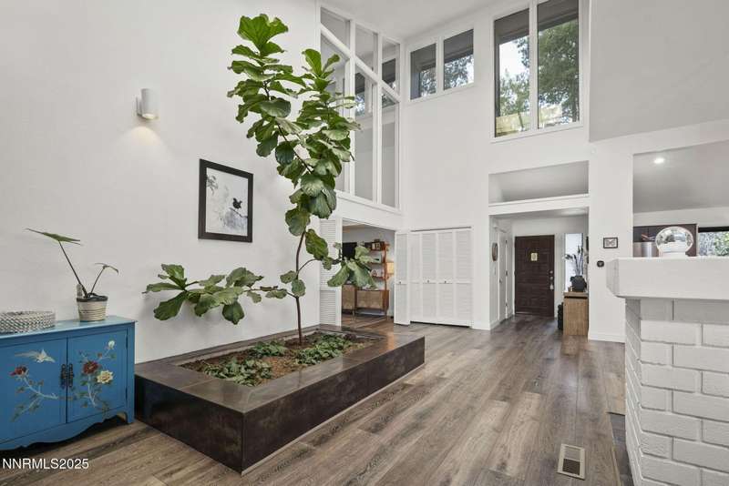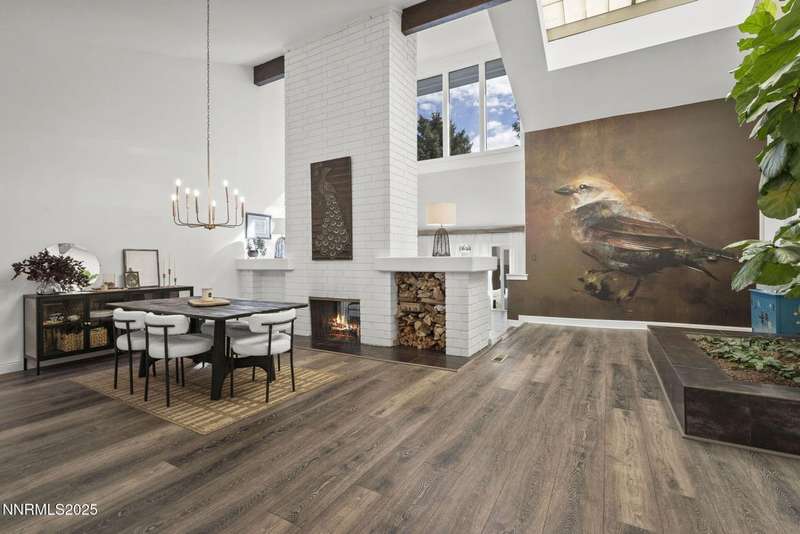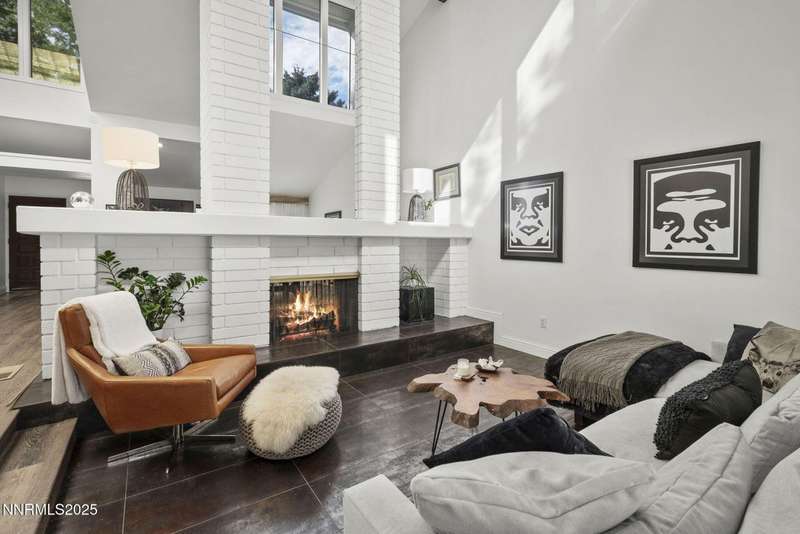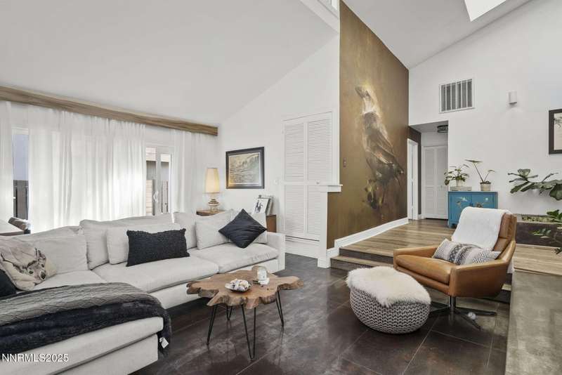 Beautifully updated and centrally located, this condo embodies tidy maximalism at its finest. The home showcases soaring ceilings, built-in planters, an open floor plan, and a double-sided fireplace, currently used as wood-burning but with the option for gas. Natural light pours in through skylights and large windows, with solar screens on upper windows to keep the home cool in summer. Situated on a quiet cul-de-sac, this unit is one of the few in the community with its own private backyard, perfect for gardening or creating a cozy outdoor retreat. The kitchen is updated with sleek leather granite countertops, a wine fridge, and newer appliances. Storage is abundant, including two closets in the primary bedroom. The second bedroom features a loft, ideal for guests or a home office. Conveniently located near the new Moana Springs Aquatic Center, parks, shopping, and restaurants, the property offers easy access to Reno's best amenities. Community features include a pool, tennis courts, a clubhouse, gardening beds, and fully managed exterior maintenance, ensuring stress-free living. This unique, pride-of-ownership condo is move-in ready and waiting for its next owner.