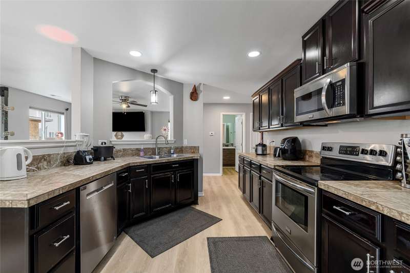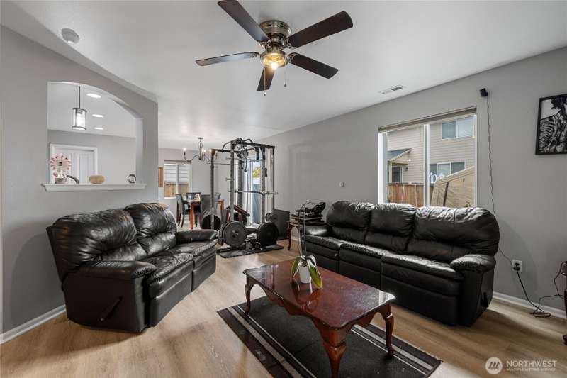 Don't miss this great 4-bedroom home in the heart of Yelm with NO HOA! The main level features a spacious kitchen with ample counter space and a walk-in pantry, plus an open concept living and dining area with a cozy gas fireplace. Upstairs offers a versatile loft area that would be great space for an office or play area, laundry room, full bath, and all 4 bedrooms. Large primary suite is spacious and welcoming with a walk-in closet, 5-piece bath, and bonus space perfect for an office, work out area, reading nook - whatever you can imagine. Enjoy a fully fenced backyard, 2-car garage, and central A/C. Great location and even better home!