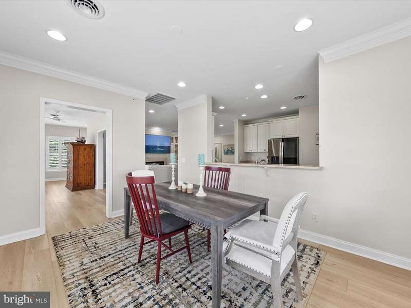 Welcome to effortless coastal living in The Peninsula on the Indian River Bay. This beautifully appointed third-floor condo offers a refined blend of comfort and style, with three bedrooms, two full baths, and thoughtful design elements throughout. Step inside to find wide-plank luxury vinyl flooring stretching across the entire unit, complemented by crown molding in the main living area and primary bedroom. The living room invites you to unwind by the gas fireplace with marble surround, framed by custom built-ins and softly illuminated by recessed lighting. Plantation shutters and a neutral paint palette add timeless elegance. The spacious kitchen is a chef's delight, featuring 42-inch cabinetry, a display cabinet, and a full suite of LG ThinQ stainless steel appliances-including a five-burner gas stove and a Wi-Fi-enabled smart grid refrigerator. The adjacent dining area is generously sized for gatherings both large and small. Retreat to the serene primary suite, where you'll find a luxurious bath with dual vanities, a stall shower with built-in bench, and a jetted soaking tub. A double-door walk-in closet offers ample storage, while an atrium door leads to the screened porch-also accessible via sliding glass doors in the second bedroom-creating the perfect indoor-outdoor flow. Additional comforts include a smart camera and lock system, sprinkler and smoke detection systems, and all the amenities of life in The Peninsula, a premier gated resort community on the Bay. The HOA covers grass cutting, landscape maintenance, snow removal, trash removal, Verizon Fios high-speed internet, HD cable, and 24-hour security with gated entrance. The Peninsula community spans 800 acres along the Indian River Bay and offers world-class amenities. The clubhouse features a large restaurant with indoor and outdoor dining, a billiard room, wine room, golf lounges, pro shop, putting greens, driving range, bocce courts, and the premier Jack Nicklaus Signature golf course. Adjacent to the clubhouse, Lakeside Village includes a state-of-the-art fitness center, game room, full-service spa, aerobics room, indoor pool, two outdoor pools, a sandy beach wave pool, hot tubs, miniature golf course, poolside restaurant, tennis courts, pickleball courts, and a dog park. Relax on the private bay beach and enjoy the beauty of this exceptional coastal community. Plus, Delaware offers the advantage of low property taxes and no sales tax. Whether you are looking for a full-time residence or a luxurious weekend retreat, this beautiful home offers an exceptional opportunity to live the resort lifestyle in one of Delaware's most coveted coastal communities.