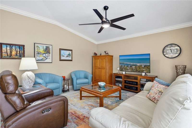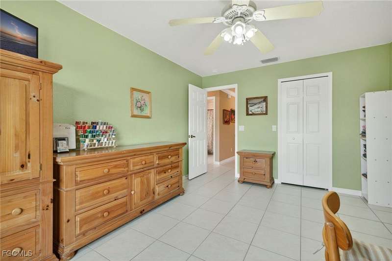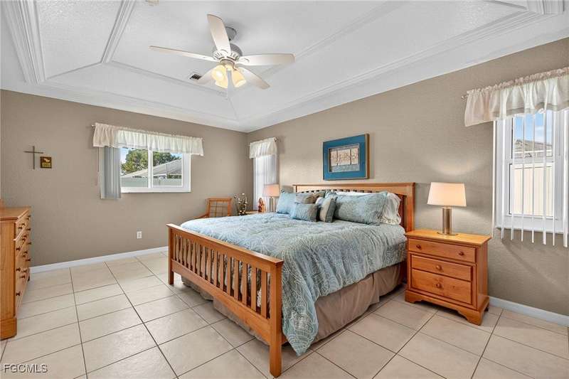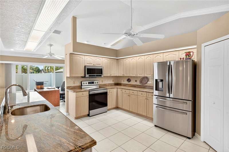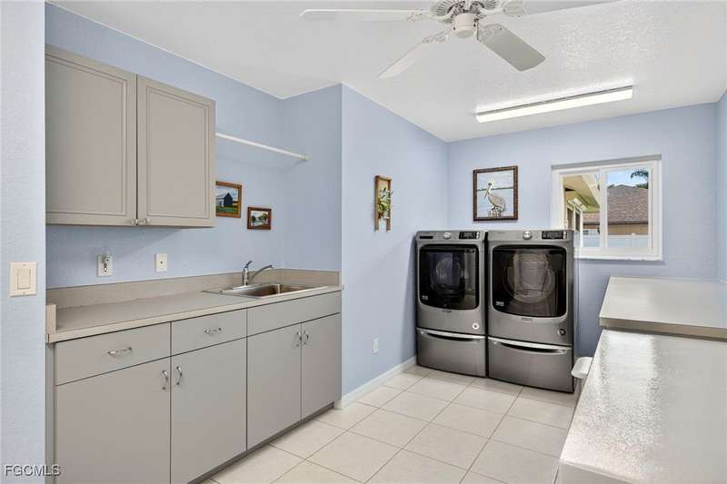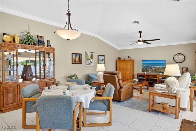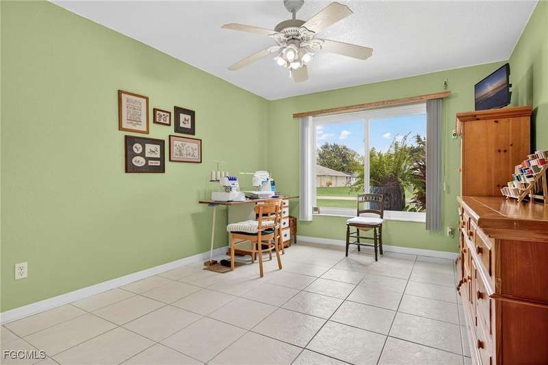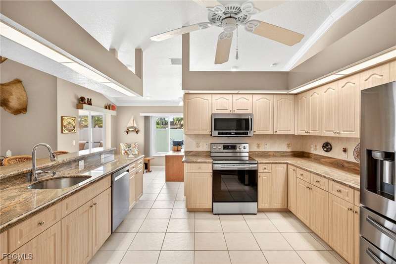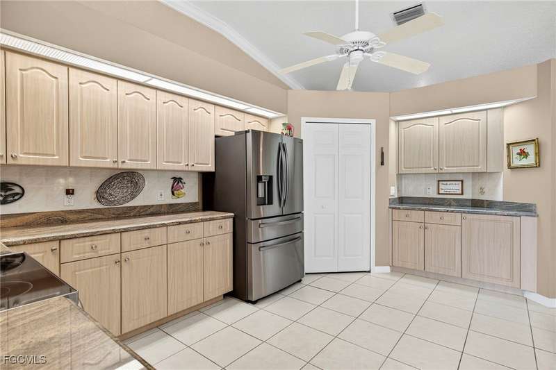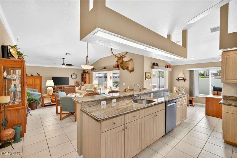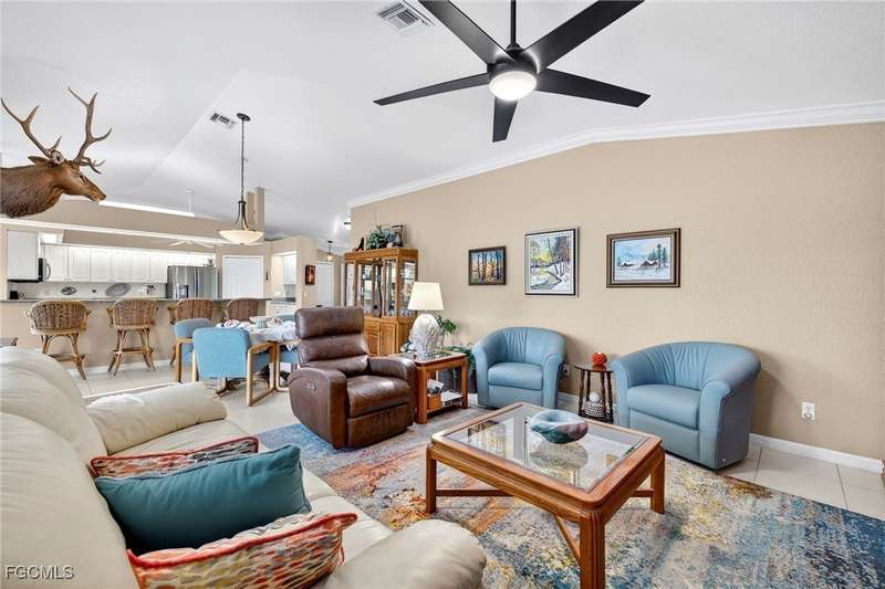 SE Cape Coral FOUR Car Pool Home with Spacious Amenities: Nestled in the heart of SE Cape Coral, this beautifully maintained home has been lovingly cared for by diligent homeowners. As you step inside from the Covered Screened Porch and into the Foyer, you are immediately welcomed by the warm and inviting Great Room. Perfect for entertaining, gathering with friends and family, or simply relaxing, the Great Room offers year-round enjoyment and overlooks the southern-facing lanai and pool area. This spacious split-bedroom floor plan boasts a large kitchen with abundant countertops & cabinets, and a convenient corner pantry. Oversized picture windows and sliding glass doors illuminate the home with natural light, creating an inviting atmosphere throughout. The Primary Suite is tucked away behind the kitchen at the far right side of the home, while the two additional bedrooms are positioned at the front and left side, providing balance between shared gathering spaces and quiet personal retreats. Step outside to discover a generous outdoor living area complete with a crystal-clear sparkling pool and meticulously landscaped yard, adding a greater sense of tranquility to your outdoor oasis. Car enthusiasts will appreciate the expansive four-car garage, offering plenty of space to store mobile toys or set up a workshop. This HUGE Triple Lot includes a privacy fence with a double gate on the left side leading to a gravel parking space, ideal for trailer storage. Roof Shingles & Lanai Pool Cage replaced in 2020, AC changed out in 2017, Pool is Solar Heated and the Home is pre-wired for Generator. Additional features include Storm-Rated Windows, Electronic Shutters, and Impact-Resistant Garage Doors for added peace of mind. To top that off, the property is situated in an X-500 Flood Zone ~ NO Flood Insurance required Here! Centrally located in South Cape, you'll enjoy convenient access to Veterans Parkway between Country Club and Santa Barbara. This home seamlessly combines comfort, style, and functionality in a prime location. Don't miss the opportunity to make it yours!