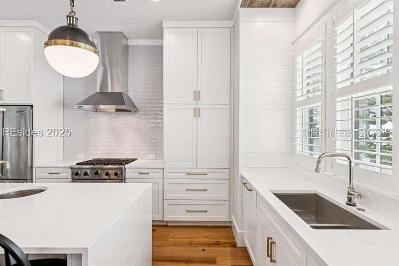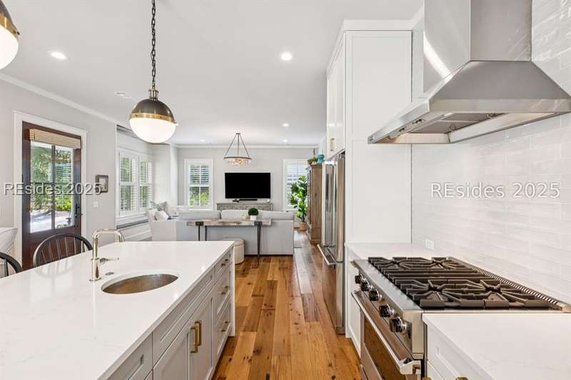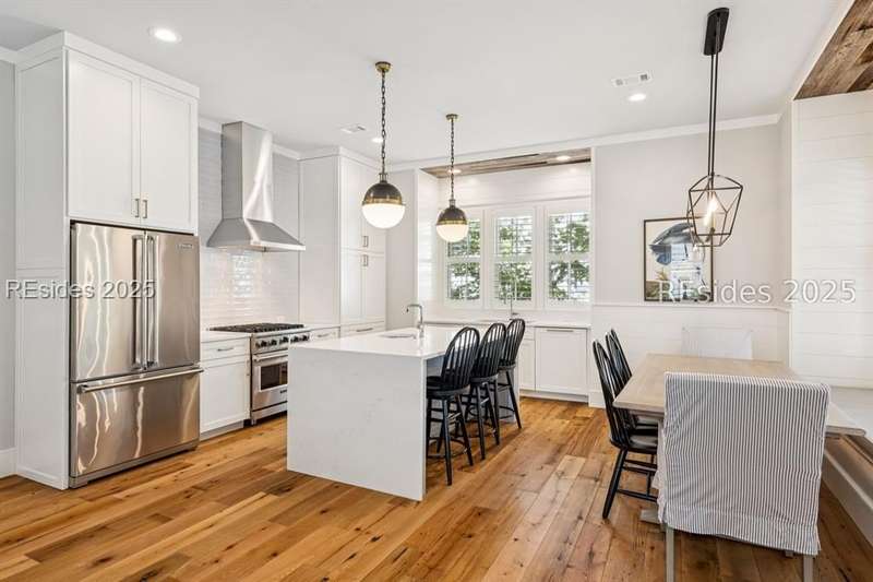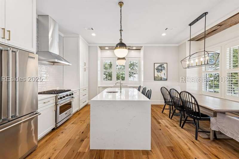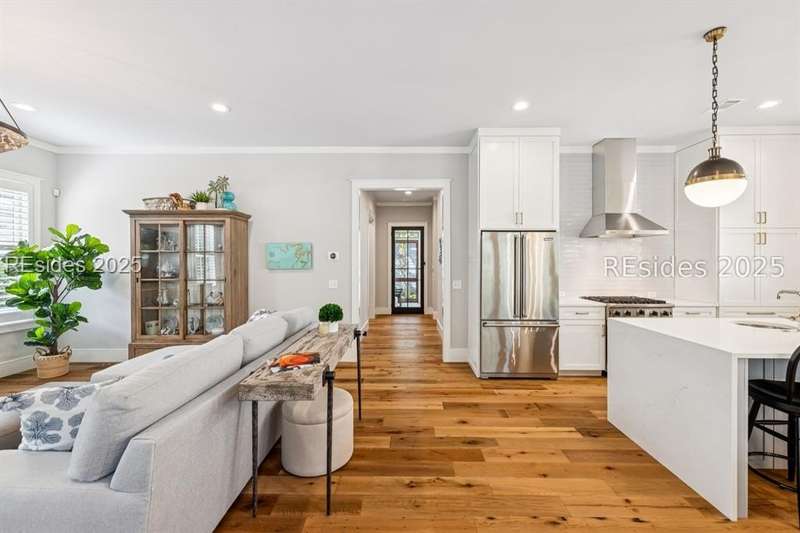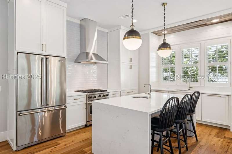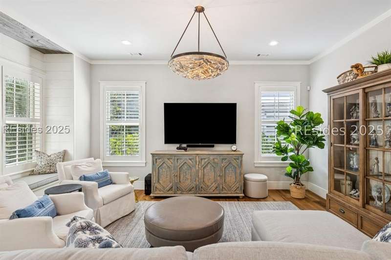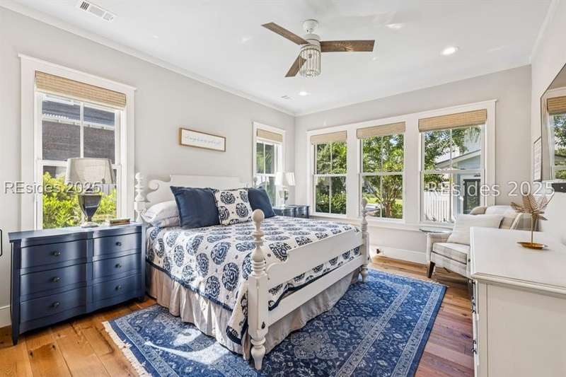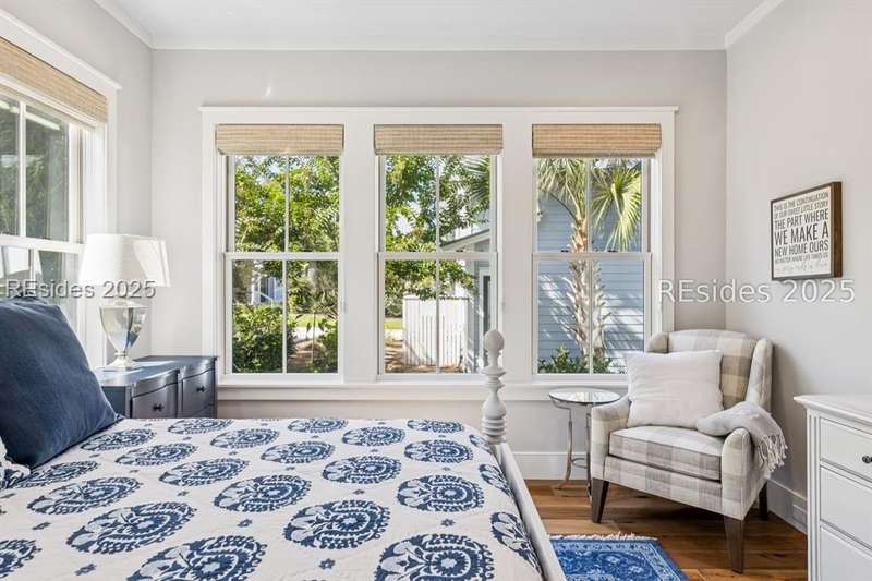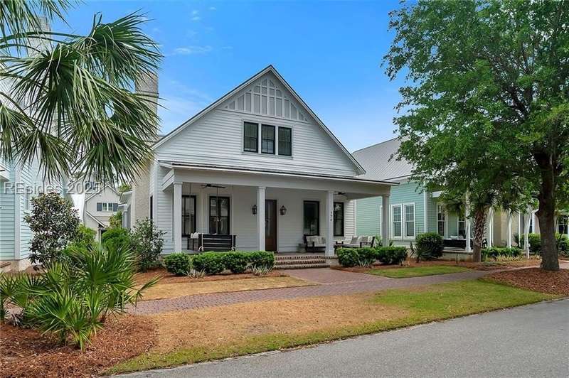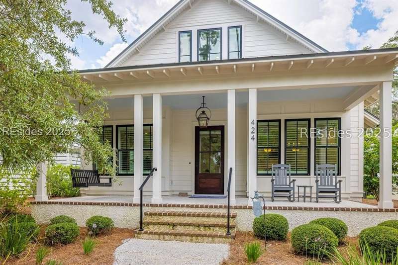 424 Corley Street is a short-term rental eligible, turnkey home in Moreland Village, just one block from the river. With 3 bedrooms, plus a bunkroom, and 3.5 baths in the main house and an additional large guest suite with kitchenette over the garage, there is ample space for friends, family and guests. The large chefs kitchen, sprawling living space, open front porch and screened back porch provide spaces for everyone to relax after enjoying the many activities in Palmetto Bluff. Dont miss this move-in-ready vacation home and income-generating property!
