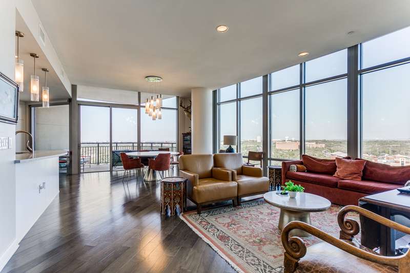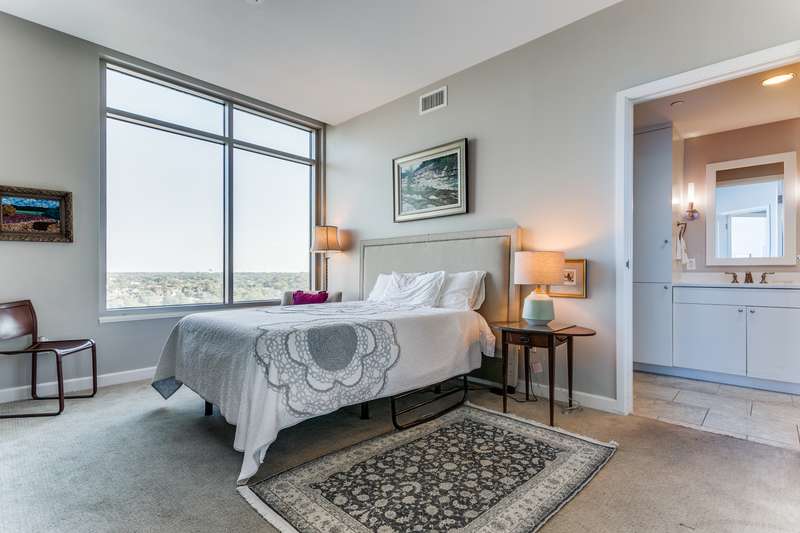 This 12th floor unit has gorgeous views of downtown, Brackenridge Park and Incarnate Word.This open floor plan has floor to ceiling windows with electric shades, hardwood floors in the living areas and carpet in the bedrooms. The open island kitchen has beautiful backsplash tiles, quartz countertops and high end appliances including an ice maker, gas cooktop, dishwasher, disposal microwave, Sub Zero refrigerator/freezer and built in double ovens. The primary bedroom has ensuite bathroom with double sinks, garden tub, glass door shower, and walk in closet. Private balcony off the kitchen and dining area. Utility closet for washer/dryer. Concierge service 24/7, valet, large pool and hot tub with outdoor grills, cabana, and TV area. amenities include a gym, sports court, dog park, private workout studio, large common living area, game room and Catering area. A must see high rise for city living. - 11/7/2025 8:15:14 PM