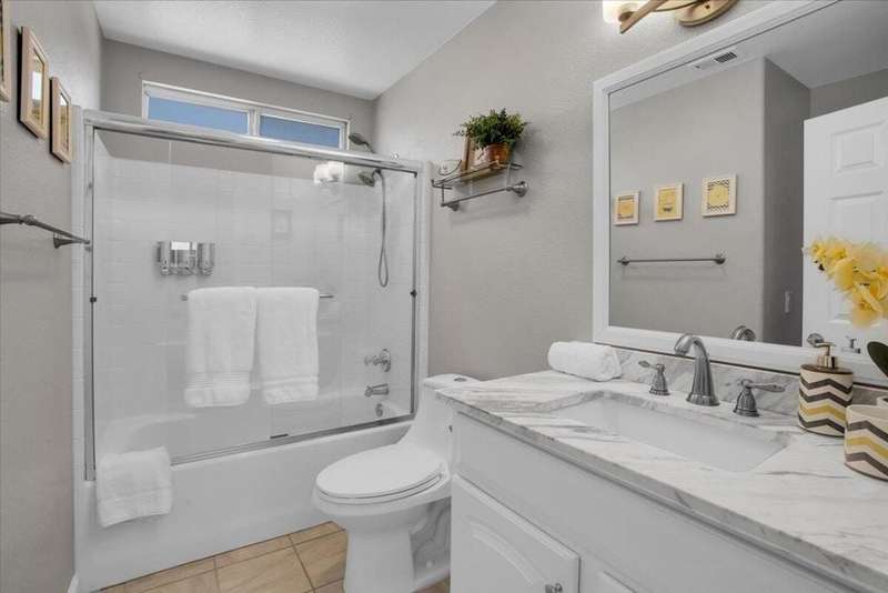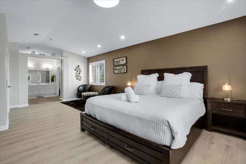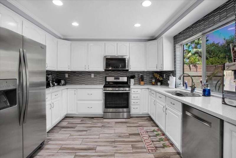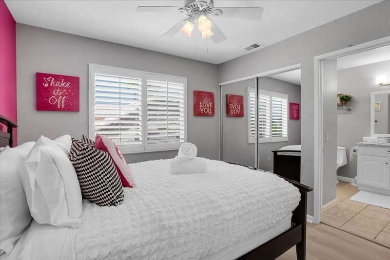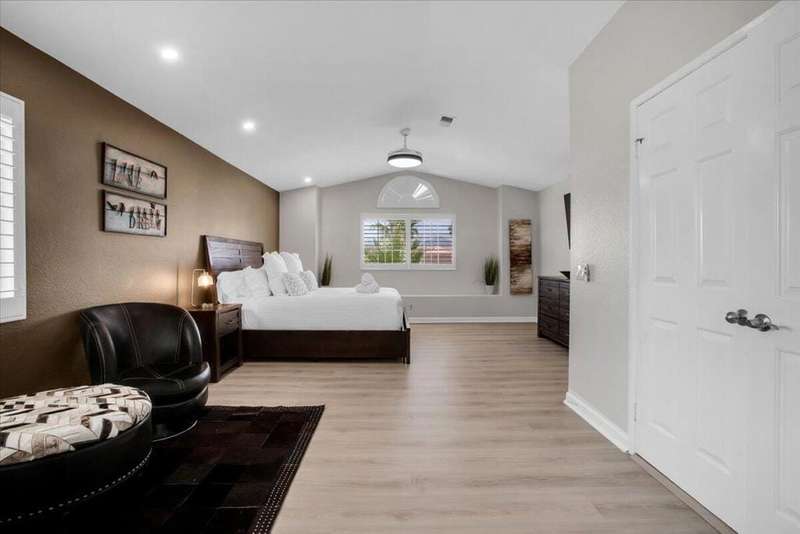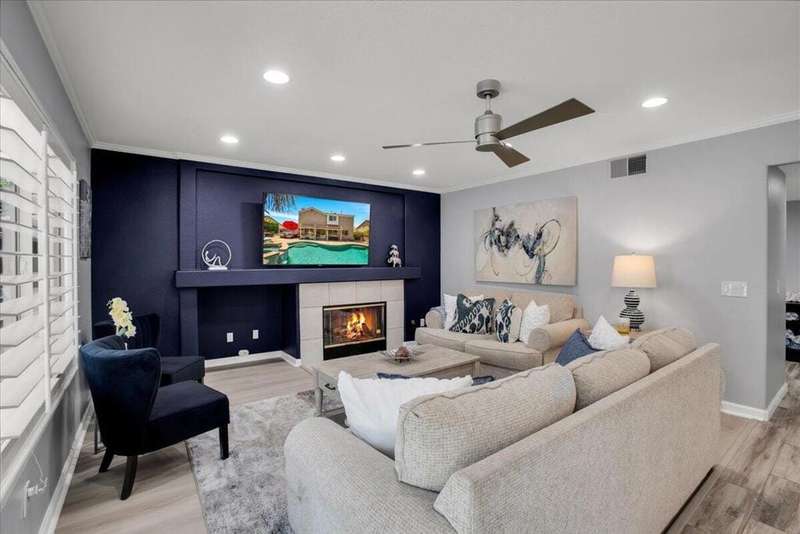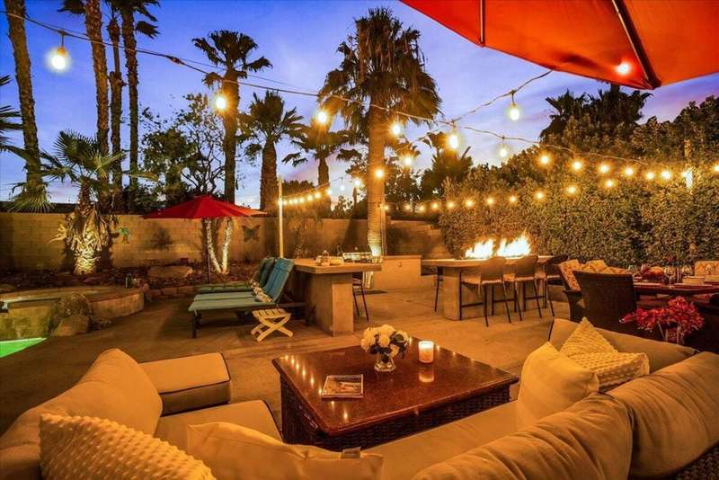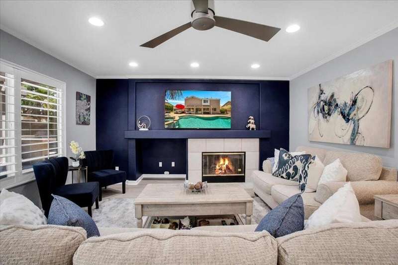 Vacation Rental. Minimum 30 days booking required. Escape to your perfect seasonal retreat in the tranquil Topaz neighborhood of La Quinta. This fully furnished 4-bedroom, 3-bathroom home, including one bed/bath downstairs, is located in a quiet cul-de-sac. Relax by the luxurious saline-pebble tech pool and spa in the expansive backyard, complete with a lush lawn, ping-pong, outdoor games, a built-in BBQ, fire pit, and multiple seating areas.Inside, enjoy the updated kitchen with modern appliances and elegant plantation shutters. Utilities are included, with a cap on pool and gas usage.Monthly Rates: Jan-March: $9500/month, Inquire for April/Coachella. May-Dec: $7500/month. Special Rate: June-Sept 2025 $5000/month. Inquire about annual/unfurnished rates.Additional fees: $495 cleaning, $188 property fee, and a $100 monthly gas cap for pool use (spa complimentary). $8500 refundable security deposit. Booked March 2026. All other dates open.