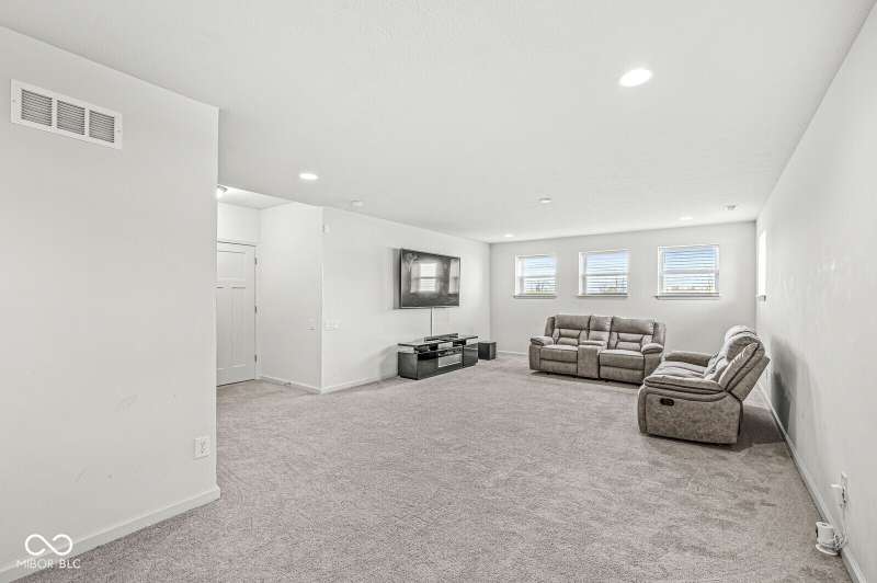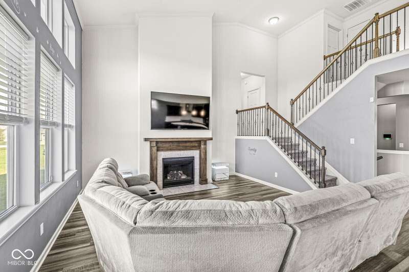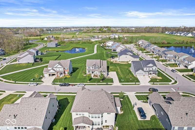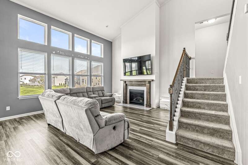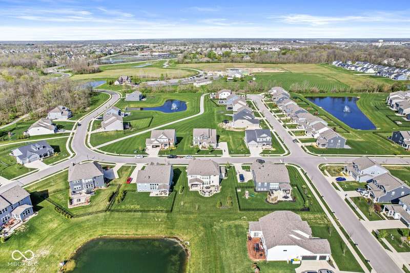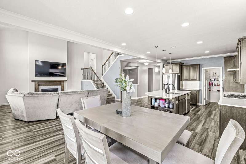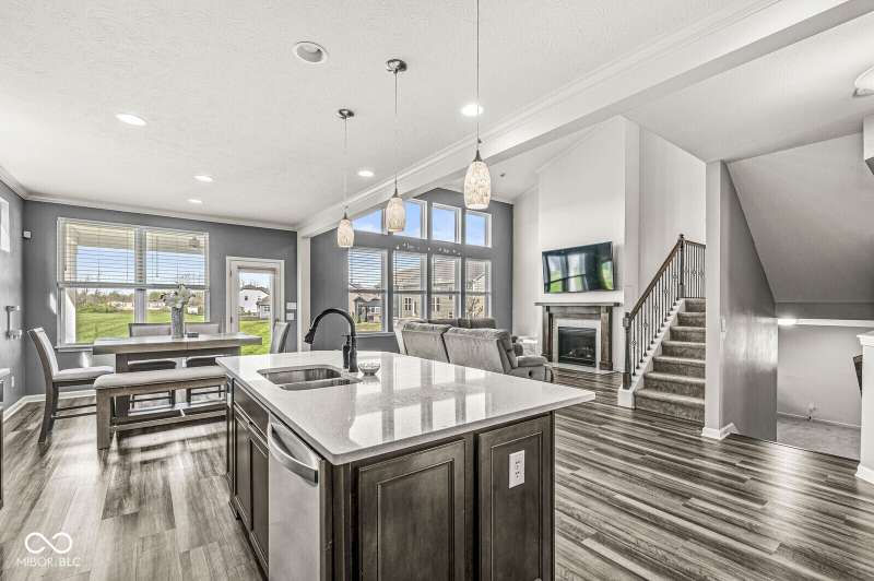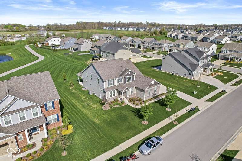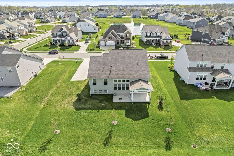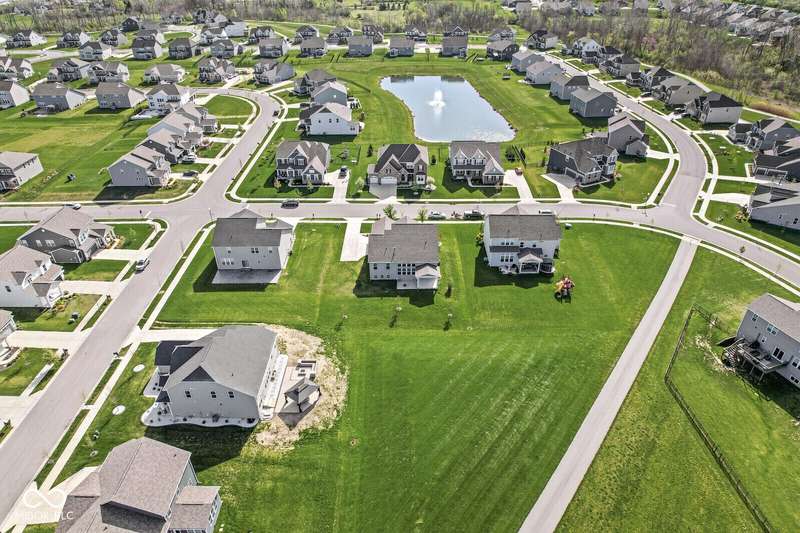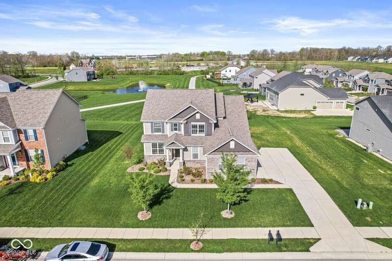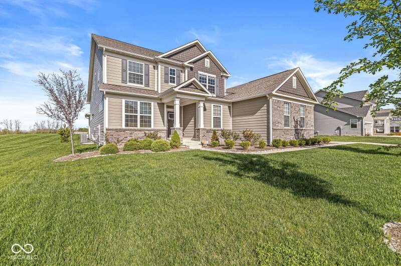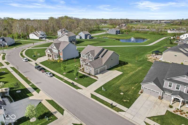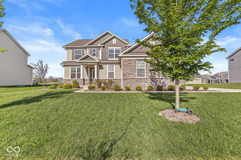 Welcome home to 12894 Corydon Dr. Exceptional estate home in Hunters Run featuring 4 bedrooms, 3.5 baths, oversized 3-car garage and multiple living areas to relax and entertain. Open layout with LVP flooring throughout main level. Large chef's kitchen features gas cooktop, built-in oven and center island. Soaring ceilings in the gathering room with a wall of windows. Thoughtful design includes a pocket office with cabinetry, mudroom and versatile flex/formal dining room near the entry. Half flight of stairs down leads to an oversized game room-perfect for gatherings or play. Primary suite is half flight of stairs up offering a quiet retreat from the additonal 3 bedrooms. Beds 2 and 3 share a Jack-and-Jill bath with bedroom 4 ensuite. Spacious basement for all your storage needs with an egress window and rough-in for future bath. Covered porch and expansive patio are west-facing- ideal for soaking in sunset views. Private .32 acre lot backs up to a pond. Great community amenities included a pool, tennis and playground. Enjoy easy access to shopping, dining, Cyntheanne Park, Nickel Plate Trail, Ruoff Music Center and more.