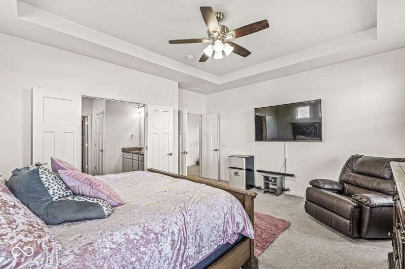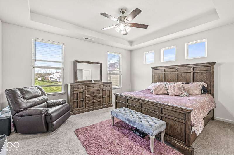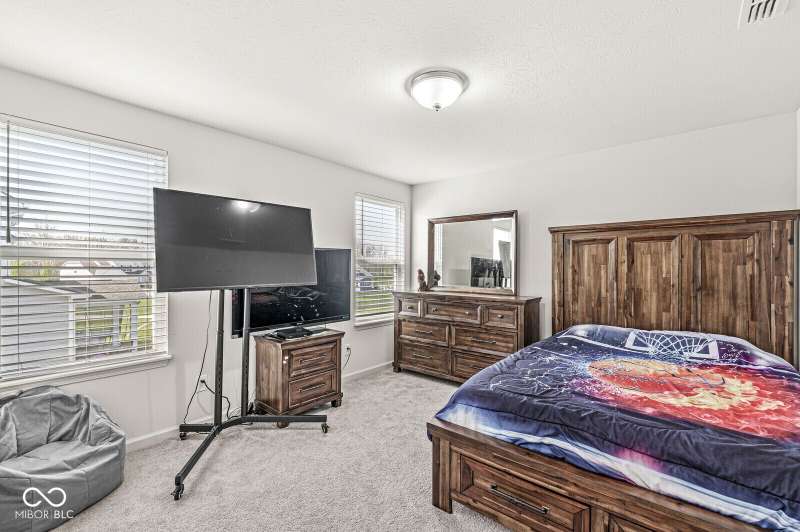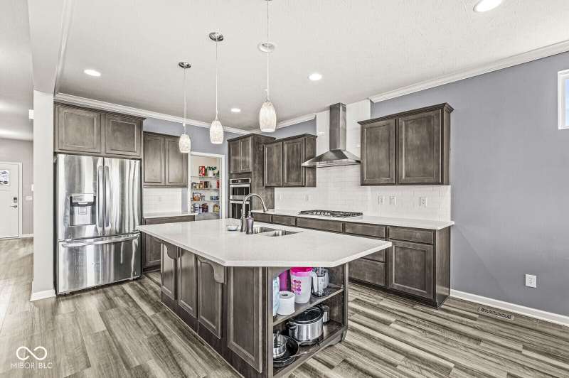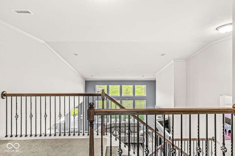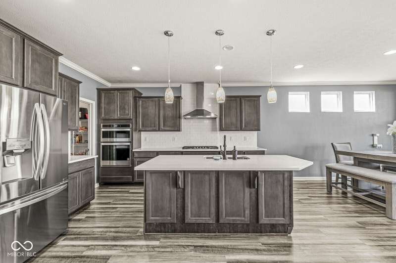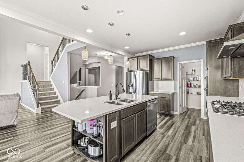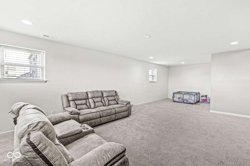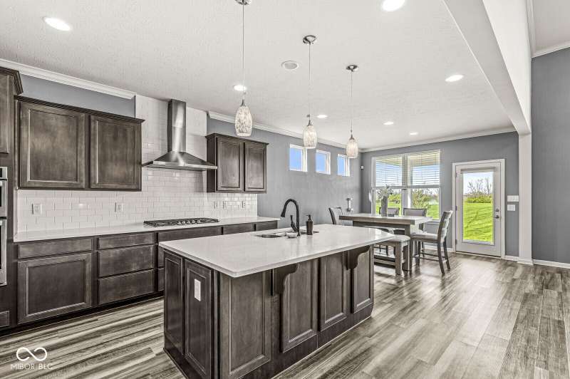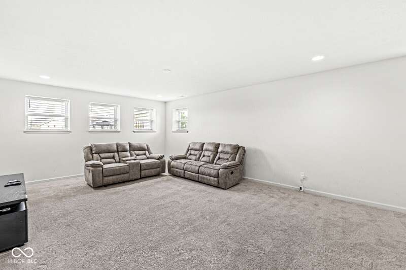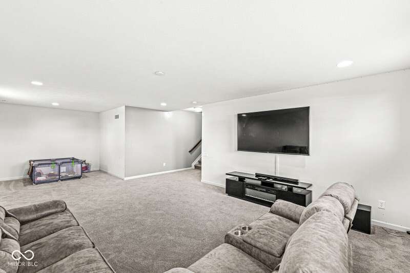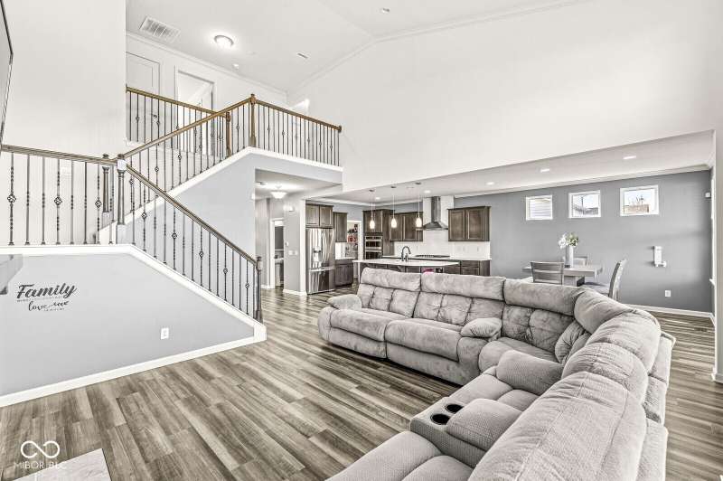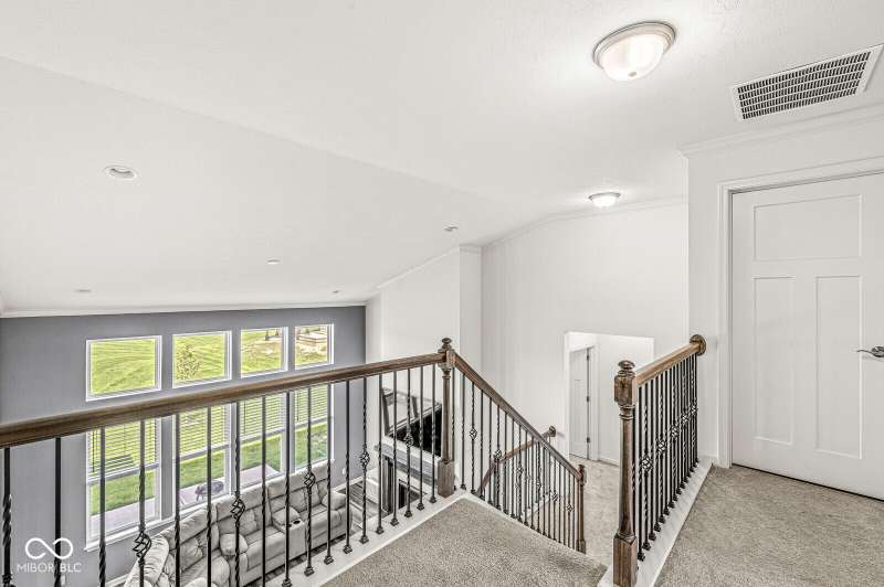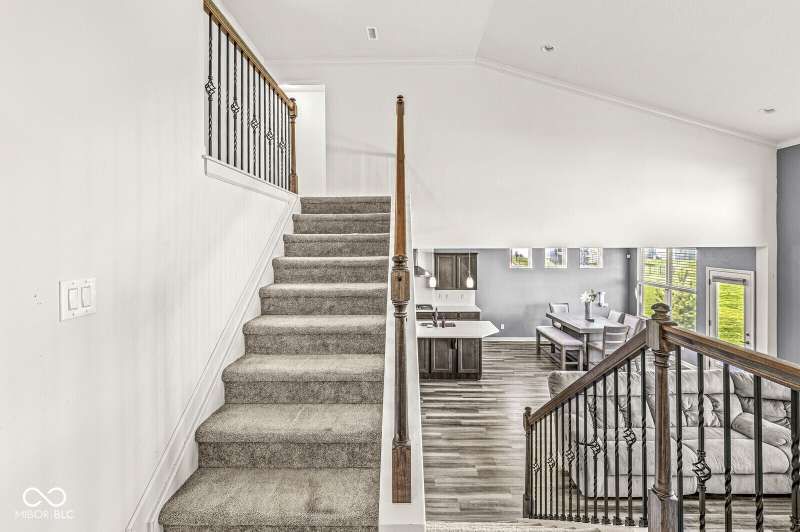 Welcome home to 12894 Corydon Dr. Exceptional estate home in Hunters Run featuring 4 bedrooms, 3.5 baths, oversized 3-car garage and multiple living areas to relax and entertain. Open layout with LVP flooring throughout main level. Large chef's kitchen features gas cooktop, built-in oven and center island. Soaring ceilings in the gathering room with a wall of windows. Thoughtful design includes a pocket office with cabinetry, mudroom and versatile flex/formal dining room near the entry. Half flight of stairs down leads to an oversized game room-perfect for gatherings or play. Primary suite is half flight of stairs up offering a quiet retreat from the additonal 3 bedrooms. Beds 2 and 3 share a Jack-and-Jill bath with bedroom 4 ensuite. Spacious basement for all your storage needs with an egress window and rough-in for future bath. Covered porch and expansive patio are west-facing- ideal for soaking in sunset views. Private .32 acre lot backs up to a pond. Great community amenities included a pool, tennis and playground. Enjoy easy access to shopping, dining, Cyntheanne Park, Nickel Plate Trail, Ruoff Music Center and more.