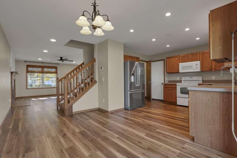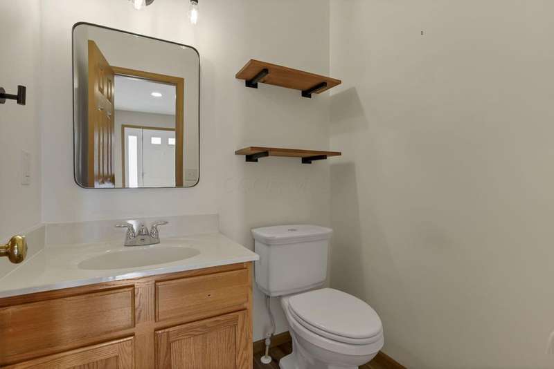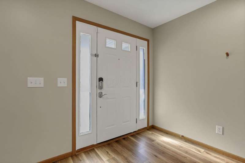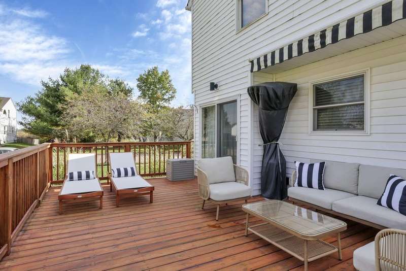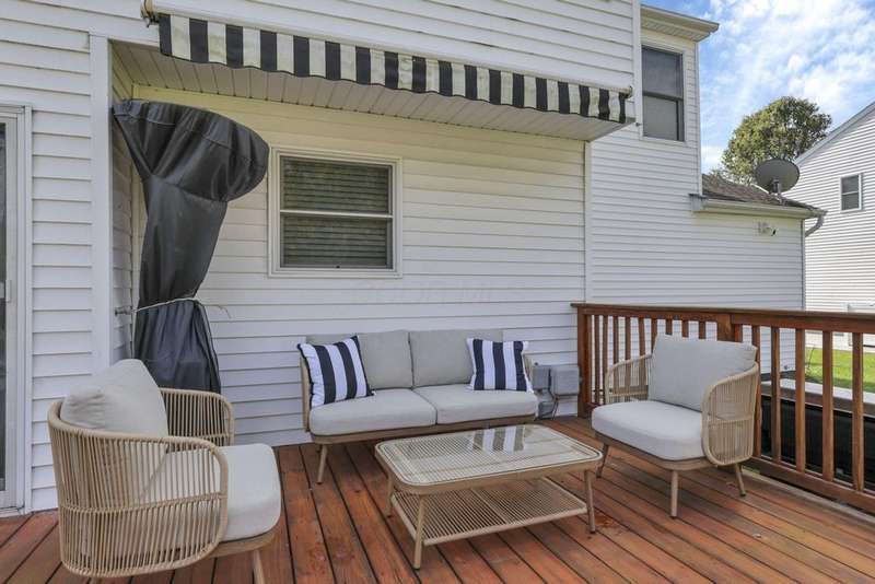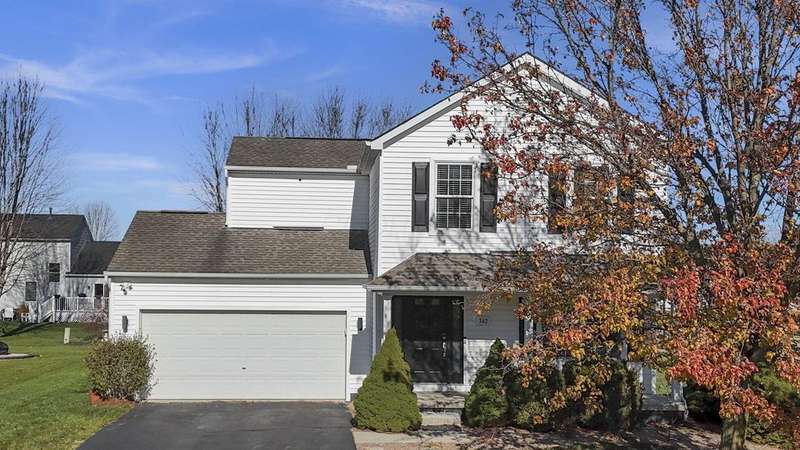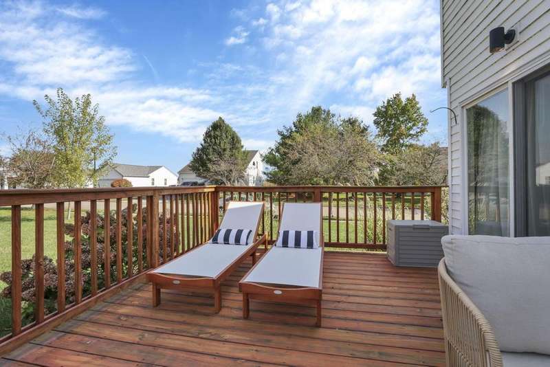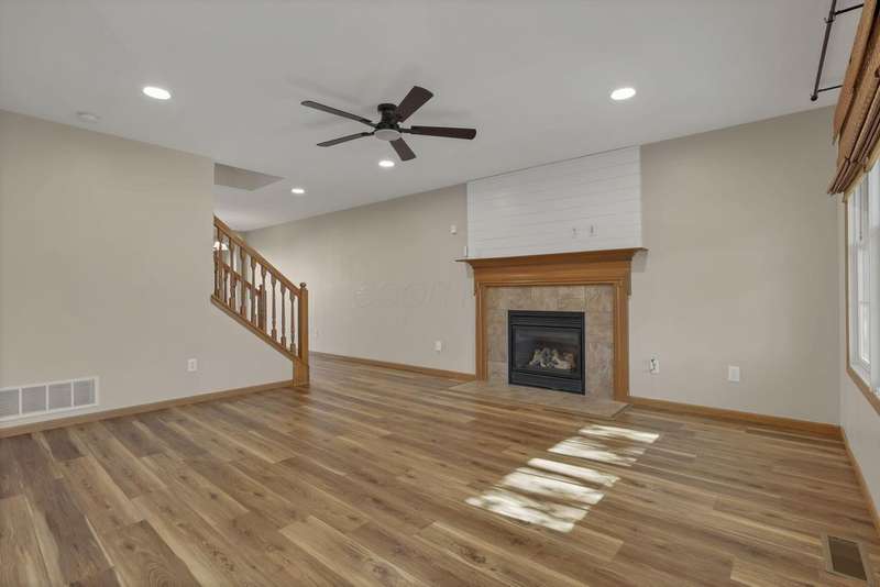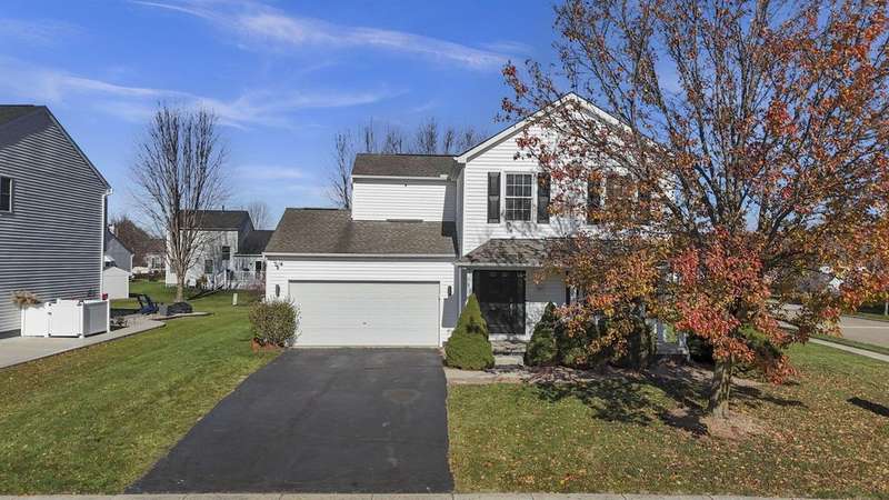 Move-in ready! Two-story home on a corner lot in North Newark with 4 nice-sized Bedrooms & 2.5 Baths. The first level features an open great room with gas fireplace, newer vinyl plank flooring, and the sliding glass door open onto a huge deck. All bedrooms and full baths are upstairs, including a spacious primary suite. Outside relax or entertain on the beautiful deck with retractable awning and nearby fire pit. The full basement has plenty of room for storage or potential to finish and add extra living space. Located in a quiet neighborhood close to everything you need.