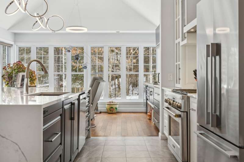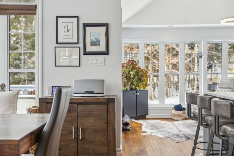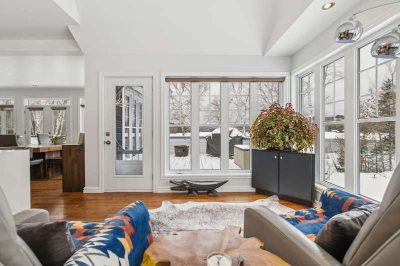 Wake up to the crystal-clear waters of Lake Simon (Lac Barriere) with nearly 300' of private shoreline, no rear neighbors, and breathtaking panoramic views. Full west-facing orientation for spectacular sunsets. High-end property: 4 bedrooms, 3 renovated bathrooms, modern kitchen, wood-burning fireplace. Double-width garage and driveway for 10 cars. Landscaped lot with spa and 2 docks. Only 60 min from Gatineau, 1 h 30 from Laval, 30 min from the Ontario shore, and just 5 min from services. This property, redesigned with high standards and attention to refinement, offers an incomparable lifestyle!