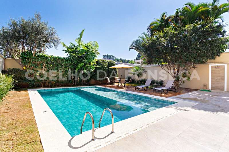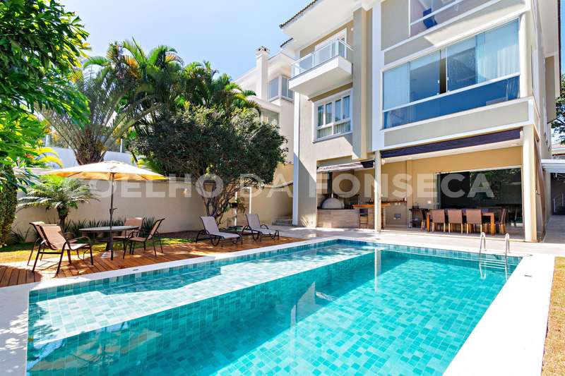 Casa no condomínio RES. DEZOITO DO FORTE, com 585m² área construída, 4 dormitório(s), 4 suíte(s), 3 vaga(s), 7 banheiro(s), piscina, escritório, ar condicionado, dep. de empregados, reformado (a), varanda, aquecedor solar, pé direito duplo.