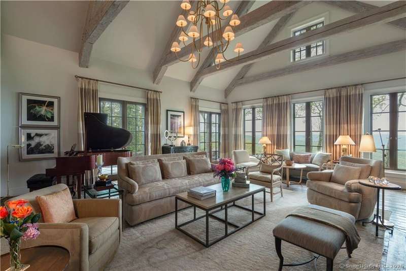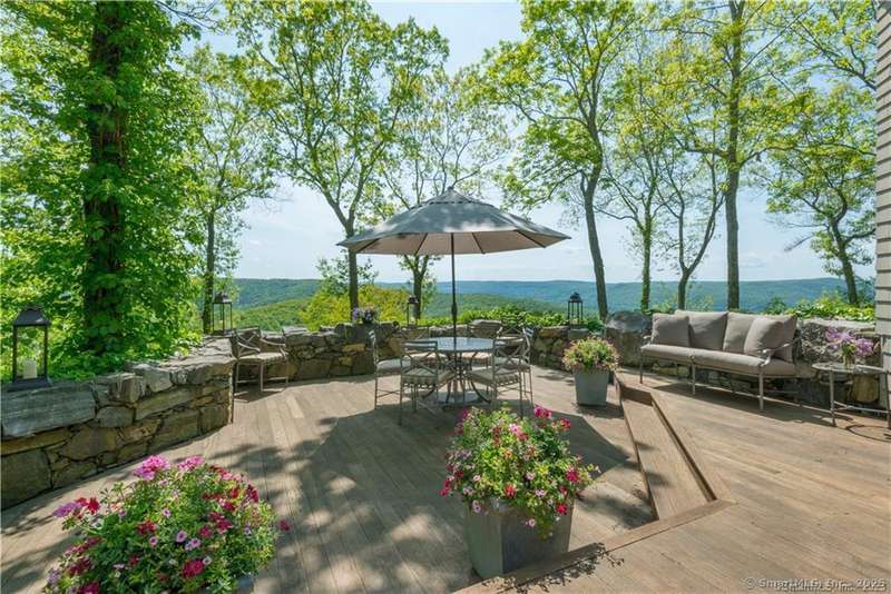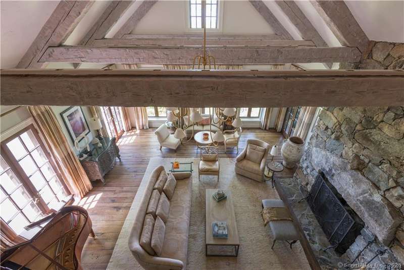 West Wind Hill, a bespoke country estate on 389 acres sits on the crest of a plateau overlooking panoramic protected views. Classic stone and shingle manor house with formal courtyard sited perfectly to experience spectacular sunsets and fairytale mists combined with the upmost in privacy. Access is via a private gated road that winds through trees, past old stone walls with glimpses of open meadow, and serene pond. Spacious rooms perfect for entertaining include a great room with a soaring peaked ceiling and a 20' stone fireplace, sun-filled formal dining room with three exposures, huge Chef's kitchen with a massive stone fireplace and adjoining catering kitchen. Beautiful reclaimed chestnut floors, exquisite detailing and banks of windows and French doors. The paneled library, office and primary bedroom suite are located on the first floor in a private wing of the house. Billiard room, complete with mini-kitchen, full bath and adjoining guest bedroom. Second-floor primary guest room with soaking tub and deck with views. Two bedroom suites with en-suite bathrooms, charming bedroom and an office complete this floor. Lower level with a media room, half-bath, wine tasting room and wine cellar with adjoining prep kitchen. Laundry room, craft room and gym. Beautiful stone steps lead to a stunning pool & pool house with full kitchen & tennis court. Two building maintenance court contains a pumping system for irrigating the lawns and gardens.