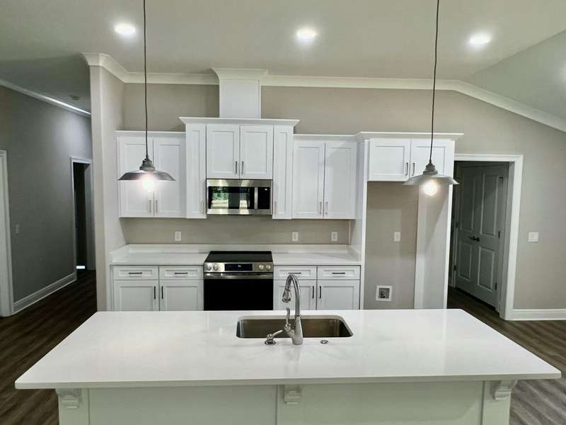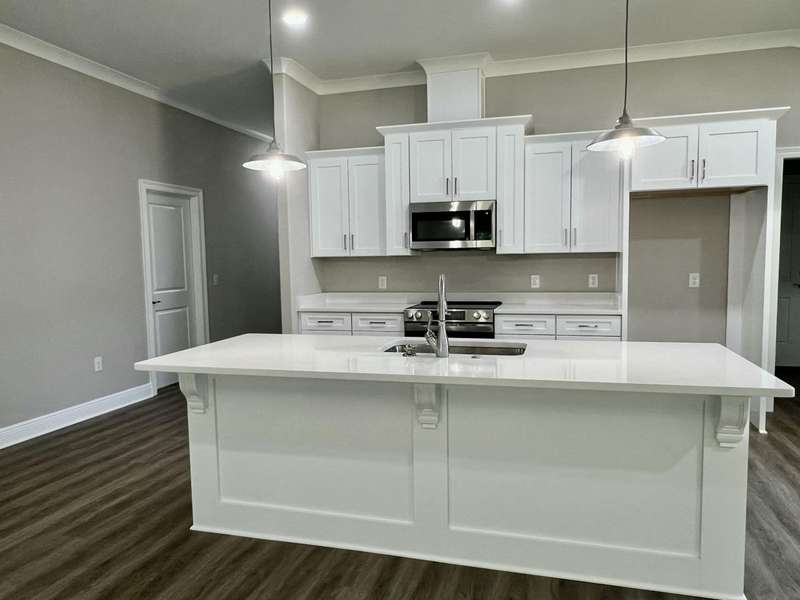 NEW CRAFTSMAN Custom Built Home ~ this luxurious 3 bed/2 bath floor plan end home of 4 new builds is MOVE IN READY~Great Central Location with easy access to Navarre Beach, Navarre Waterfront Park and Hwy 98 to Hurlburt Field AFB.This Stunning Robbins Builders Home offers trend setting features~Greeted by a walk in foyer sweeping through to your open floor plan ~Large kitchen enjoying custom cabinets with crown molding, beautiful quartz counter tops~under mount sink~S/S appliances, large double door pantry & closed off utility room ~sleek top center Island with pendant lights ~open flow to the family room with patio doors out to the large covered porch .Wood look LVP throughout with tiled bathrooms~ Large master with trey ceiling /ceiling fan and large walk-in closet ~master bath offers an oversized TILED shower ~ double vanity with picture frame mirrors. Additional Bedrooms are a great size with double closets and ceiling fans~Home has a welcoming covered front porch and large covered back porch to sit out and enjoy those wonderful Florida evenings ~great to cook out and entertain. Grassed yard with irrigation system for easy care in the summer months. TAEXX in wall pest control system~ Hurricane protection for windows and dimensional shingle roof for lower insurance premium. Upgrades throughout include recessed lighting, bedroom fans, crown molding, deluxe lighting package,50 Gallon water heater, garage door remotes, attic drop down stairs~ to name a few.....Call today for further information.