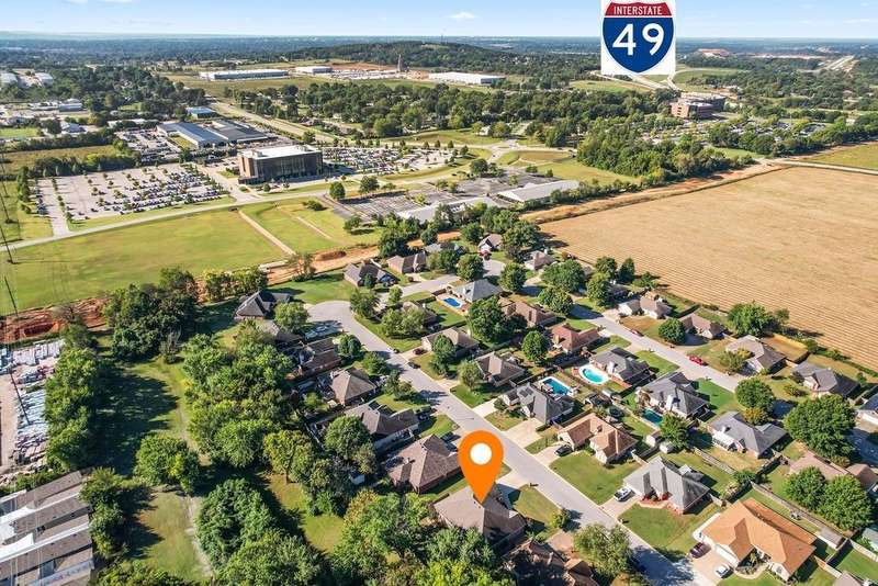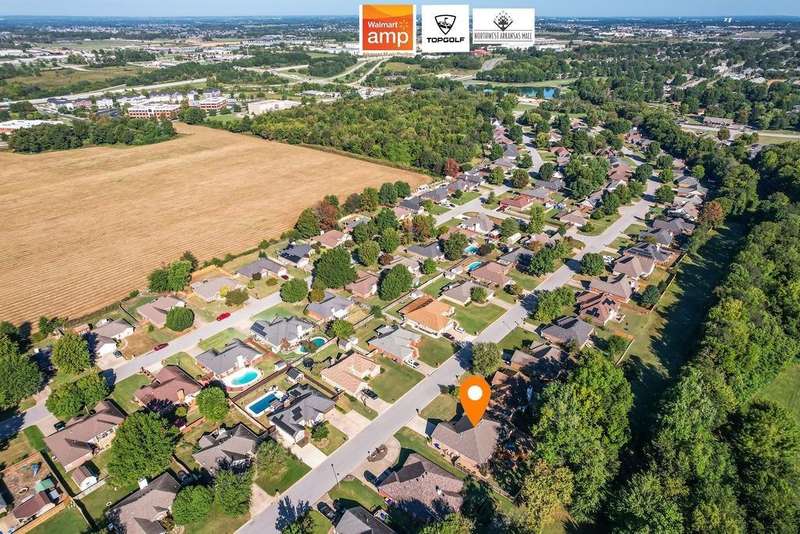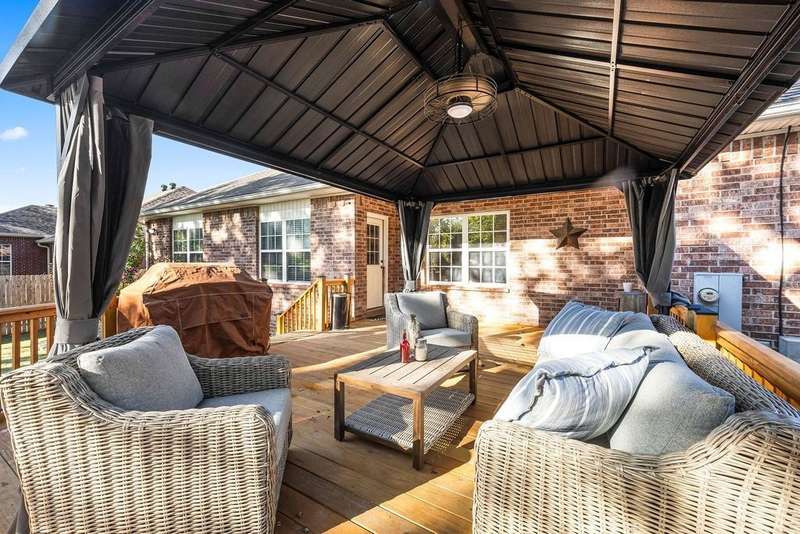 Amazing location, one level, 4 bedrooms, 2,287 sq/ft, all brick, & a private back deck that overlooks greenspace. Plus is located less than a mile from I-49 & only 5 minutes from the JB Hunt Headquarters. What more could you ask for? This 4-bedroom, 2-bath home is spacious & well-appointed, featuring oversized bedrooms, a formal dining area, & a split floor plan. The home has several modern updates, from the beautifully landscaped front & backyard to the updated painted cabinets & hardware. Several rooms have been freshly painted, & you will love the engineered hardwood floors throughout, with no carpet. The living room contains a beautiful gas fireplace & is pre-wired for an entertainment surround sound! The back deck has been recently rebuilt and stained. You will enjoy the private canap�© set-up overlooking the greenspace with no neighbors behind you. The backyard has a fire pit to enjoy those cold fall evenings. This house will not last long, so come & fall in love with your new home before it's too late!