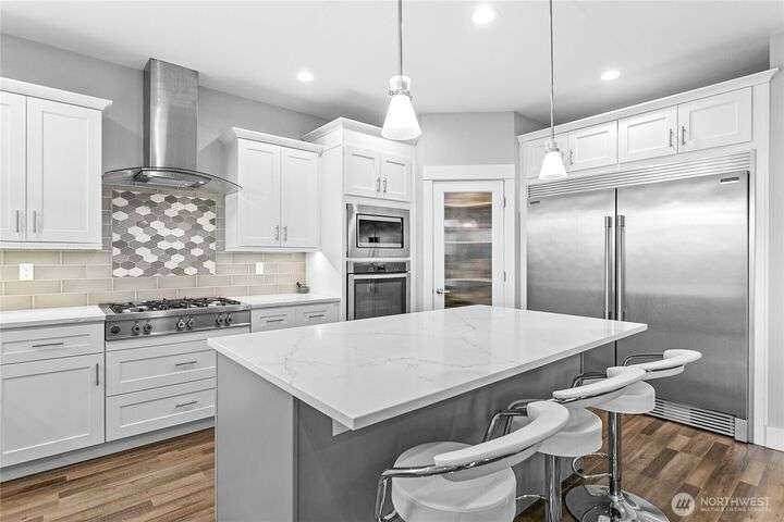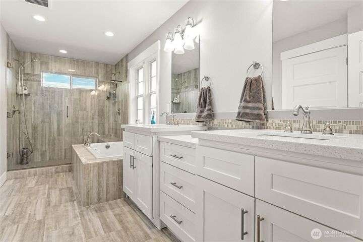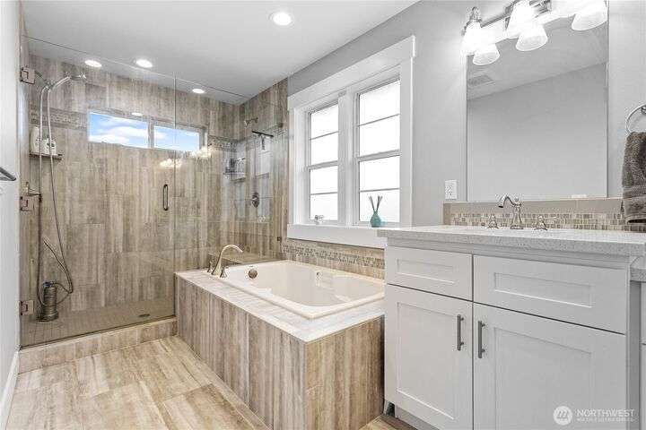 Most desirable neighborhood-The Meadows. This Modern Luxury Rubicon built offers 5-bedroom, 3-Bath nestled in a quiet cul-de-sac. A beautiful open living space, creating an inviting ambiance from the moment you arrive. The elegant kitchen is a chef’s dream, boasting a side-by-side fridge/freezer, soft-close cabinets, walk-in pantry & Quartz countertops. It features full stone gas fireplace, surround sound, central A/C, forced Air furnace & covered back deck. Primary bedroom is your personal retreat, featuring a walk-in closet,a luxurious bath w/ a tiled shower, soaker tub.Enjoy outdoor living in your fenced backyard, perfect for entertaining or simply unwinding in privacy. This home faces green space, offering easy access to walking trails.