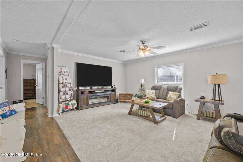 Seller is offering $5,000 closing cost/prepaids credit to buyer at closing! Come take a look at this 3 bedroom 2 Bathroom Lake Front Home on Crescent Lake! This home is a 1490sqft 3 bedroom 2 bathroom split floor plan home from 2018. Inside the house you have an open floor plan that allows for Lake views from the Kitchen, Dining Room, and Living Room. The Master Bedroom is going to have a large walk in closet, coupled with a large Master Bathroom with a HUGE Shower. The Guest Rooms on the right side of the home each have a walk in closet. Out side you have a deck that you walk out to from the Dining room to enjoy your mornings on the Lake, this will also make entertaining and hosting events at this Lake House a breeze. This home also has RV hook ups and the yard has an irrigation system. All decks, dock, sea walls, and Garage were put in during 2019-2020. Dock has had a lower level added in 2024.