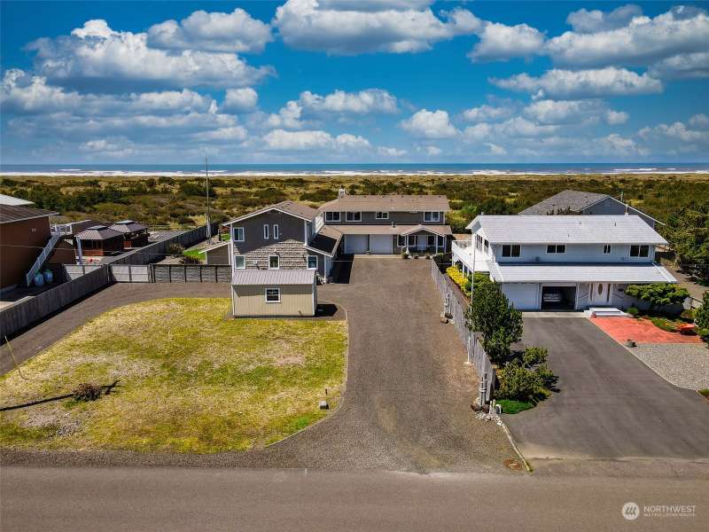Ocean Shores; Beach Front Estate can be your OASIS! ~ Sitting on 1/2 Acre w/120' of Ocean Frontage! Open Concept ~ Living Rm, Dining Rm & Chefs Kitchen w/all NEW LG STAINLESS SMART APPLIANCES! Wall of Windows Across Home & Balcony give you a Fabulous Ever Changing OCEAN VIEW! Primary Master Suite w/Bedrm & Dressing/Sitting Rm & 3/4 Bath! Multi Gen Living w/Comfortable ease of movement aided by ELEVATOR & Bridge Span to Guest Quarters apprx 551 sq ft w/Bath. Private Self Contained Well OR City Water! Propane~ Stove/Heating/Tankless WHtr/Water Well & Gen Systems. 1622 asf of Gar & Shop Space. RV Parking. Rodda LS & Sprinkler System. Fully Fenced PRIVATE! TOO much to list ~ see Supplements for more. Private Path to the BEACH ~ get some Peace!!