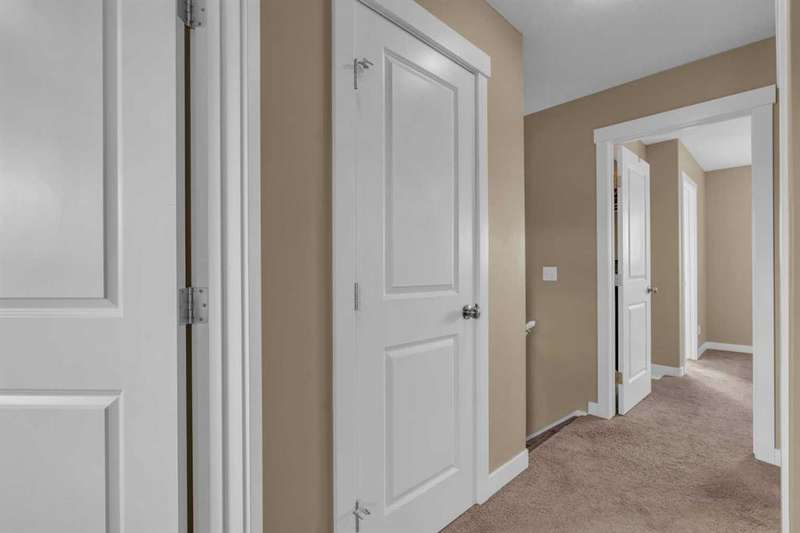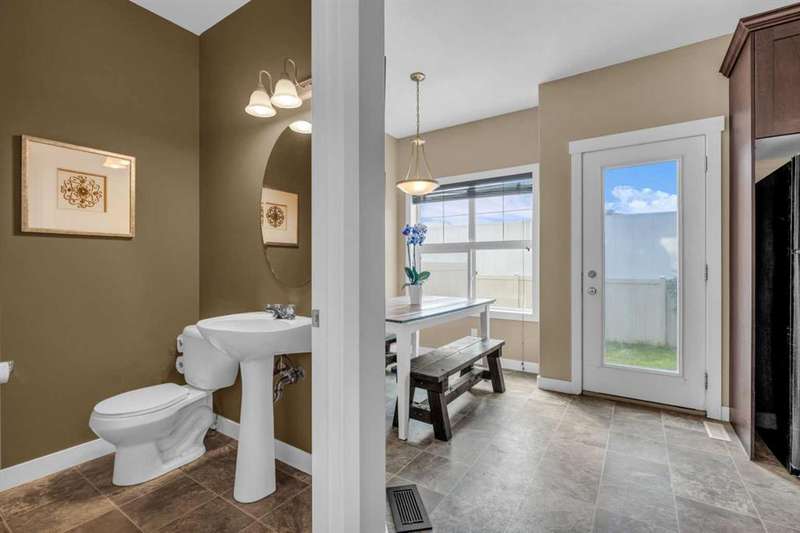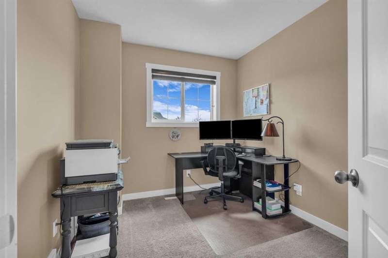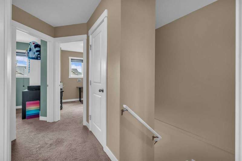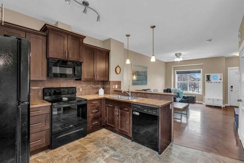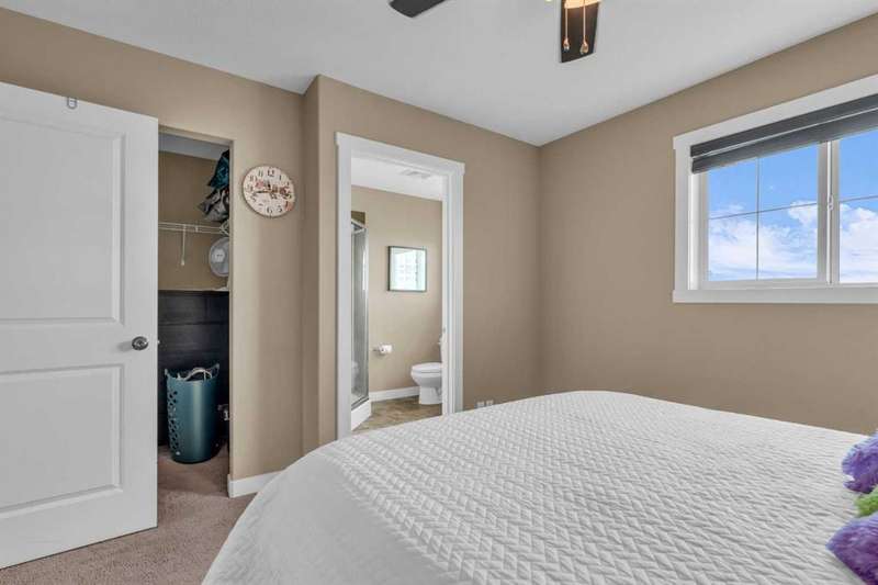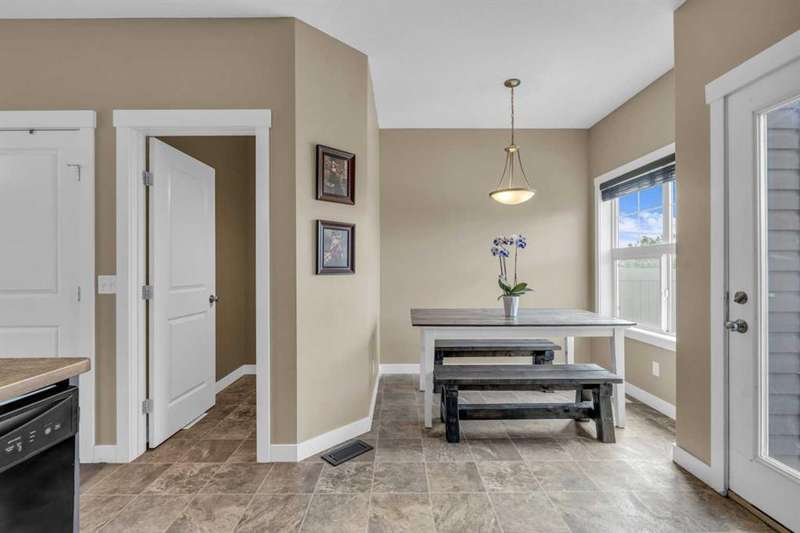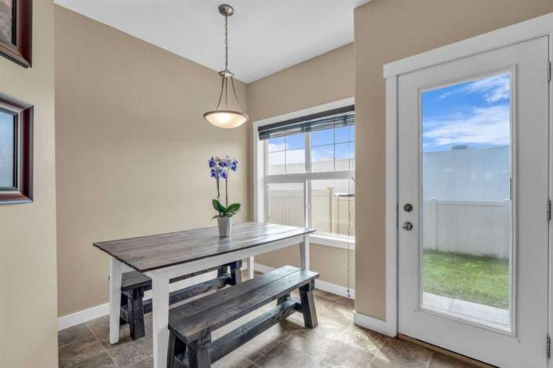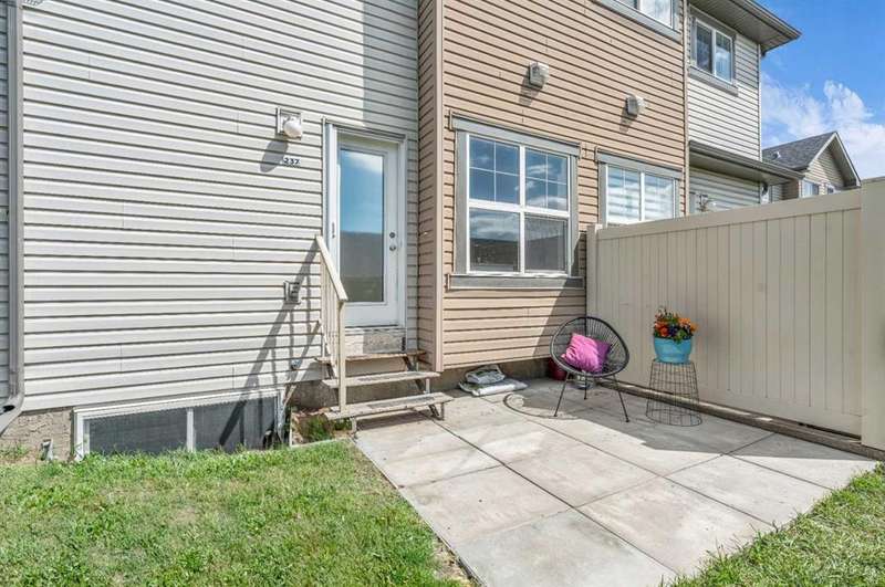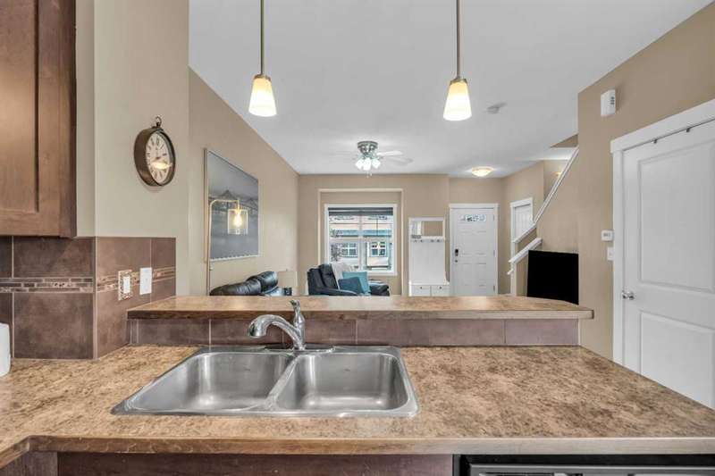 BEST VALUE IN THE COMPLEX FOR THREE BEDROOMS | Welcome home to the quiet end of the complex (limited vehicle traffic, and no pedestrians walking through your yard!) - a place that feels both inviting and full of possibility. From the moment you walk in, you’ll notice how open and welcoming the main floor feels. The expansive living room is more than just a space - it’s a place where life happens. Picture a glowing Christmas tree in the front window, a cozy movie night with loved ones, or filling the room with greenery to create your own indoor oasis. The kitchen is truly the heart of this home, with rich espresso cabinets, plenty of storage, and a perfect little breakfast bar for quick bites or heartfelt conversations over morning coffee. The newer Whirlpool range makes cooking a joy, while the warm backsplash and durable counters add both charm and function. Just off the kitchen, a sunny dining nook is the perfect spot for family meals or lingering with friends over dessert. Step outside to your private, south-facing patio and yard - a quiet retreat for summer BBQs, peaceful evenings under the stars, or afternoons with a good book. With no homes directly behind you, you’ll appreciate the calm, quiet, and sense of extra privacy.? Upstairs, three bedrooms provide room for everyone - or a little flexibility for a home office or creative space. The primary suite is a true retreat with its walk-in closet and a rare 3-piece ensuite filled with natural light. Two additional bedrooms, a full bath, and a linen closet complete this level, keeping everything you need close at hand. The unfinished basement is brimming with opportunity - whether you dream of a cozy family room, a teen’s private getaway, or just the perfect spot for storage, the choice is yours (and it’s already roughed in for a bathroom). Outside, the curb appeal is just as welcoming, with charming peaked rooflines, a covered front porch, and your own private, extended-length parking stall right at your front door. Guests will always find plenty of street parking nearby too. This pet-friendly, well-kept complex even offers a little play park, and the location couldn’t be better - schools, shopping, parks, and amenities are just minutes away. And when you want a bigger-city vibe, Calgary is only a 30-minute drive. Whether you’re a first-time buyer ready to settle in, an investor looking for the right property, or someone who’s downsizing without wanting to give up comfort, this home offers a little bit of everything. Warm, practical, and full of possibility - it’s more than just a townhouse, it’s the next chapter in your story.