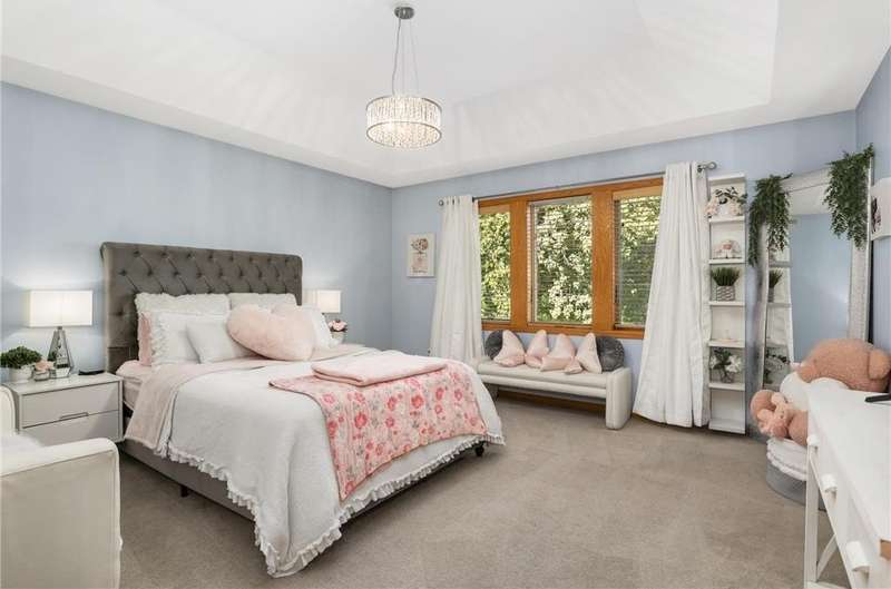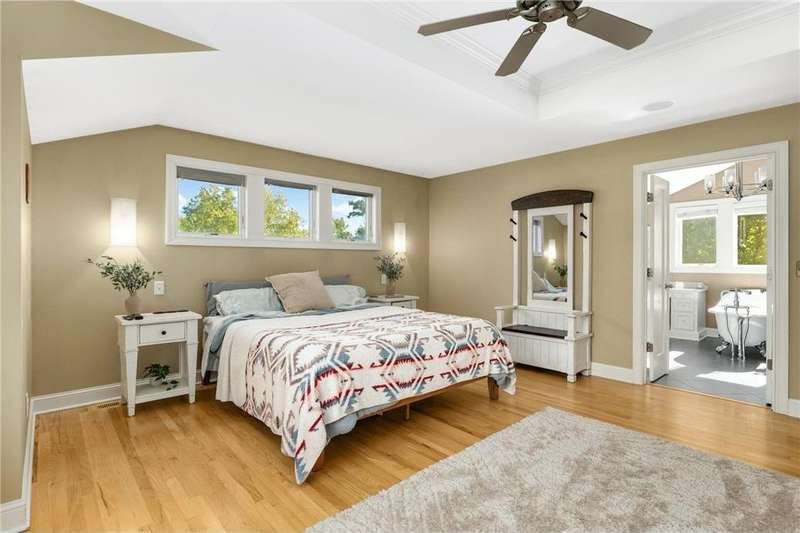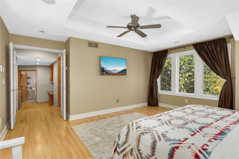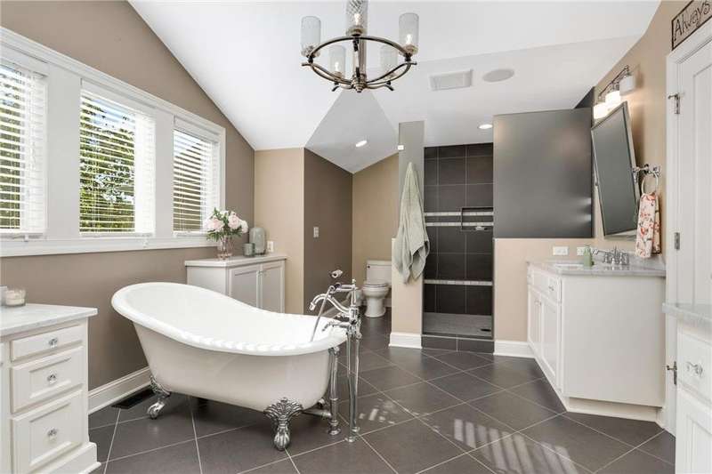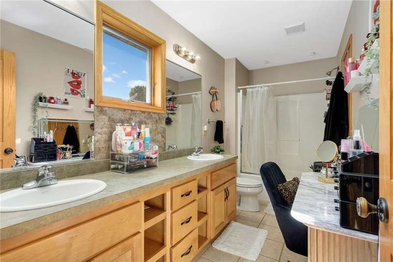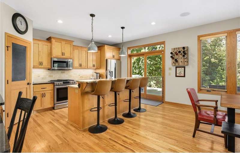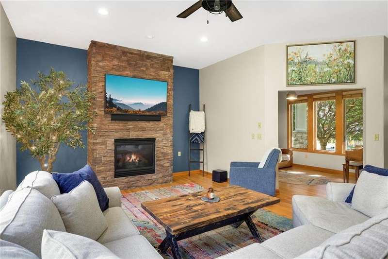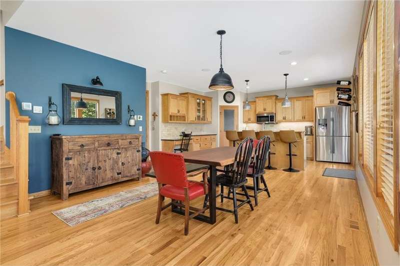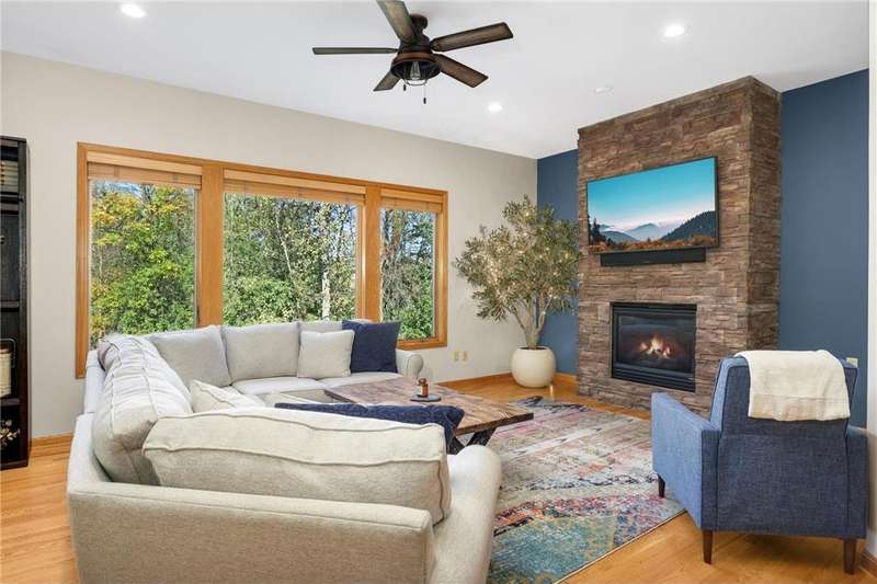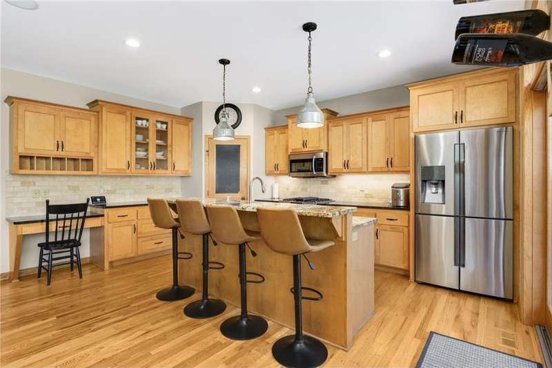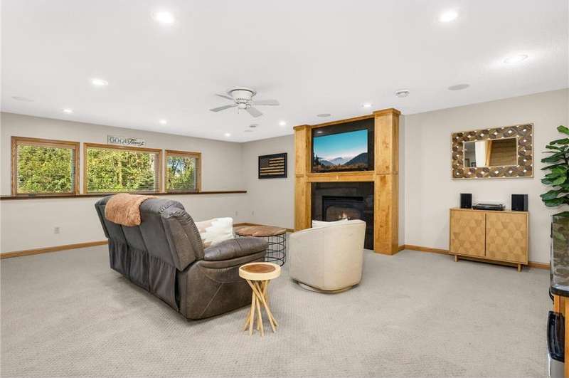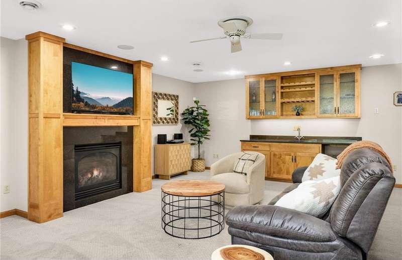 Welcome to 6390 Langer Lane, a beautifully maintained home on a quarter acre in the Centennial School District. The open living room features a cozy fireplace and hardwood floors throughout. The main level includes a flex room ideal for an office or reading nook, a fully equipped mudroom, and an oversized three car garage that is fully insulated and heated. The kitchen offers a large island with bar seating, stainless steel appliances, granite countertops, and a walk-in pantry. Upstairs are four bedrooms, two with private baths and two sharing a full Jack and Jill. The primary suite features a stunning tiled bath with separate shower, soaking tub, in-floor heat, and a spacious walk-in closet. A convenient upper-level laundry room with sink adds functionality. The finished lower level includes a fifth bedroom, a tiled three-quarter bath, a wet bar, and a fireplace. Step outside to the deck overlooking the wooded backyard, perfect for morning coffee or evening relaxation.