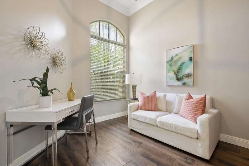 Updated modern with sweeping water views, 4 bdrm, study and 2nd level loft home, in Mirasol Country Club Community. Bright and open floor plan with living, dining, main level Primary suite, main level guest suite, office and family room open to the kitchen. 2nd level loft with 2 bedrooms and bath. Spacious patio surrounded by lush landscaping, inviting pool and spa perfect for relaxing and entertaining. Enjoy Sport Membership Privileges at Mirasol Country Club with two champion golf courses, state of the art practice range and facilities, 15 clay tennis courts, full-service spa, aquatics center, fitness center, family sports complex, walking and biking, grand