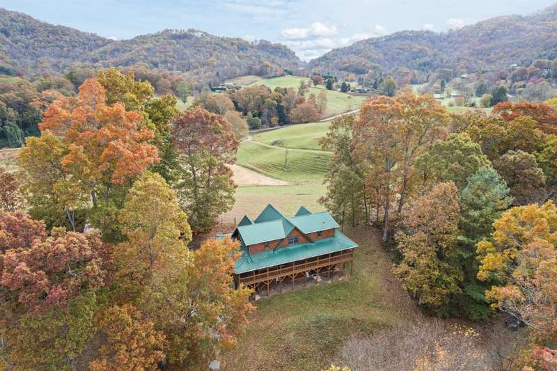 Welcome to The Sanctuary, a private post and beam retreat nestled on 3.45 acres of wildflower pastures, with three plentiful flowing streams, long-range year-round mountain views, and a well-maintained horse barn. This distinctive cabin offers rustic charm and modern upgrades, including a great room with a grand stone wood burning fireplace, a kitchen with stainless steel appliances, and a main level primary suite with a generously sized jetted tub. A dedicated laundry and mud room and a heated and cooled 2 car garage, perfect for a home gym, add functionality. Relax on one of two serene balconies, taking in the sights and sounds of nature. The barn includes water, electric, a concrete floor, and room for 2 to 3 horses plus a small workshop. Gated for privacy, yet just minutes to Cataloochee Ski Resort, The Swag, and hiking into the Great Smoky Mountains National Park. Only 10 minutes to Maggie Valley, 20 to Waynesville, and 40 to Asheville, this is a true mountain haven.