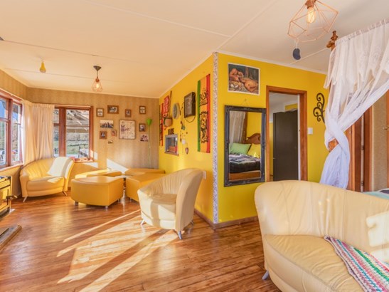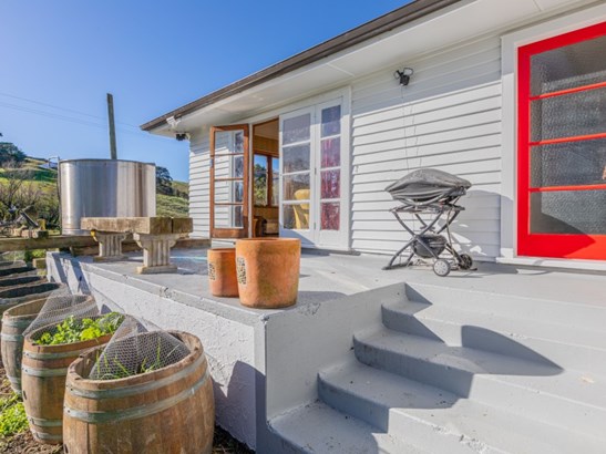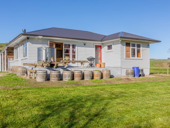 Perfectly positioned to capture all-day sun, this property presents an exceptional opportunity for those seeking a peaceful rural retreat without compromising on modern conveniences. From the elevated patio, enjoy sweeping, uninterrupted countryside views, overlooking a picturesque stream along the boundary. Step inside through the French doors to the open-plan lounge and dining area, where native timber floors, abundant natural light, and a cosy fireplace create a warm and inviting atmosphere. The separate, classic Kiwiana-style kitchen features ample cabinetry and a convenient servery to the dining area. Accommodation includes two generous double bedrooms, each with dual wardrobes and built-in drawers. The upgraded bathroom boasts a shower over a freestanding cocoon tub and a new vanity, while a separate toilet adds practicality. A spacious laundry offers potential for an additional shower and toilet, particularly suited for the two-room studio spaces located just steps from the back door, with covered access. a near-new energy-efficient solar power system, new roof, rewiring, septic tank system, and two water tanks. Set in a serene rural location, you’ll have space to grow your own fruit and vegetables while enjoying nature’s beauty every day. Despite the peaceful setting, amenities are close at hand the village store, pub, and school are just five minutes away, and the popular local beach is only a short 10-minute drive. Don’t miss this rare opportunity to combine self-sufficiency, comfort, and a sought-after rural lifestyle.