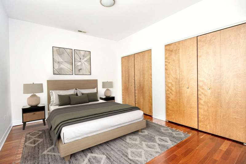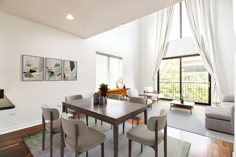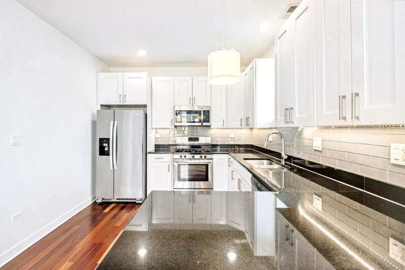 Luxuriously updated and modern 3 bed, 2 bath duplex penthouse with private rooftop deck, located in the heart of vibrant Pilsen! Step inside to find three spacious bedrooms plus a large lofted den, perfect for a home office or second living area. Recently rehabbed, the unit features a sleek white shaker kitchen with granite countertops and stainless steel appliance. The open kitchen flows seamlessly into the living - dining space, ideal for entertaining, with soaring, light filled two story windows. Spacious bedrooms with custom built-in closets, refinished cherry hardwood floors throughout, beautiful bathrooms, and in unit washer/ drier complete the luxury experience. Enjoy stunning, picturesque skyline views from your private rooftop deck, perfect for relaxing or hosting friends. Conveniently located with easy access to highways and just a short walk to public transportation. Live in the heart of Pilsen, surrounded by exciting restaurants, bars, nightlife, and cozy coffee spots.