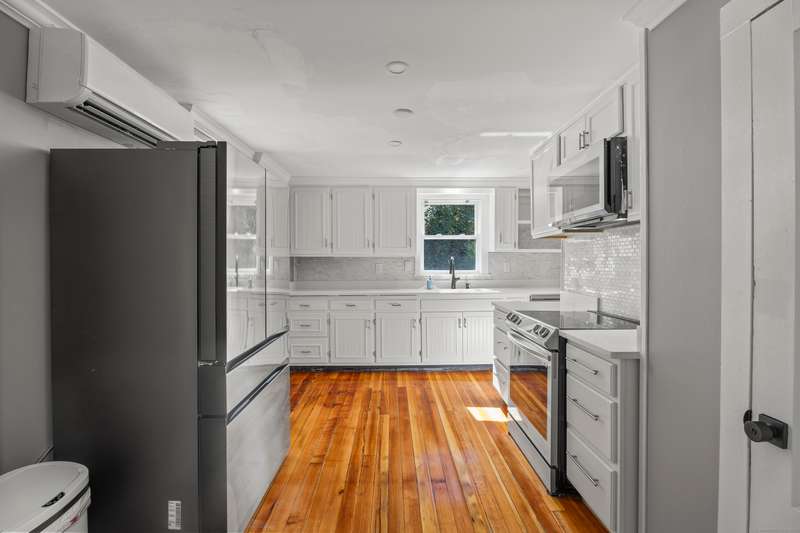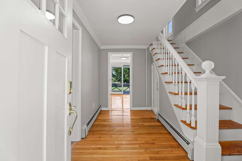 For those looking for their own private retreat..here it is! This adorable updated Colonial on a dead end w/ private driveway will give the feeling of peace, especially from the HUGE wraparound porch. Westward water views of the bay, and a short walk down to Mago point plus Downtown Niantic! A huge cleared backyard with available shed storage, and fully fenced in too! Enter and be greeted by gleaming refinished hardwood floors, and a sightline directly out the rear, you instantly feel like home! Remodeled kitchen w/ beautiful Quartz countertops, custom tile backsplash, new appliances, and a thruway into the dining room abundant w/ natural light, a side door to a garden area, & powder room (with laundry!) French doors off the living room out to the rear, perfect for remaining left open letting in a salt air breeze. On the 2nd floor, 3 br's w/ a remodeled full bath, and on the 3rd floor two more br's and another custom full bath w/ jacuzzi tub! All wood floors have been refinished, and n