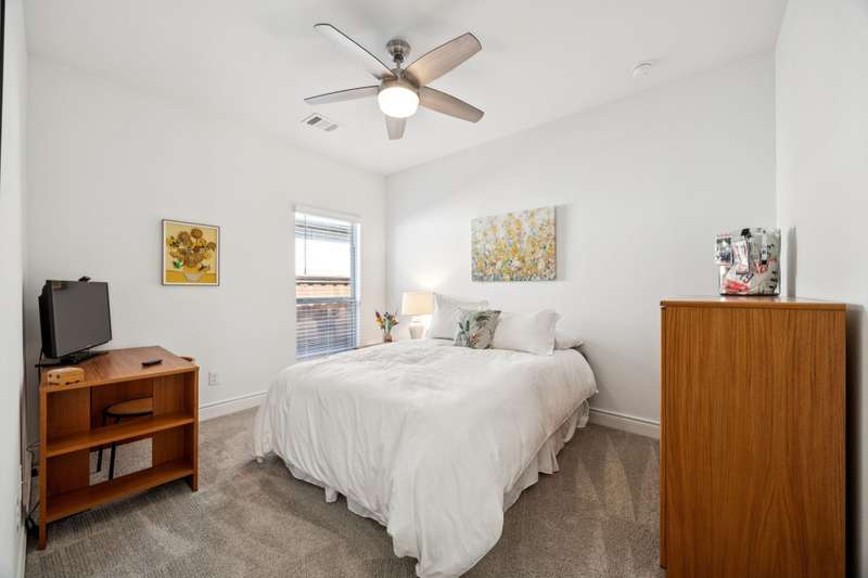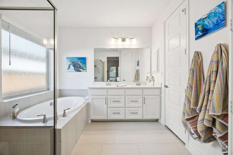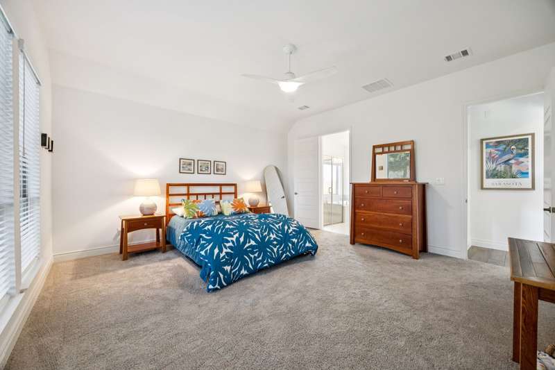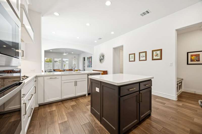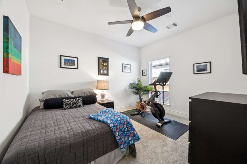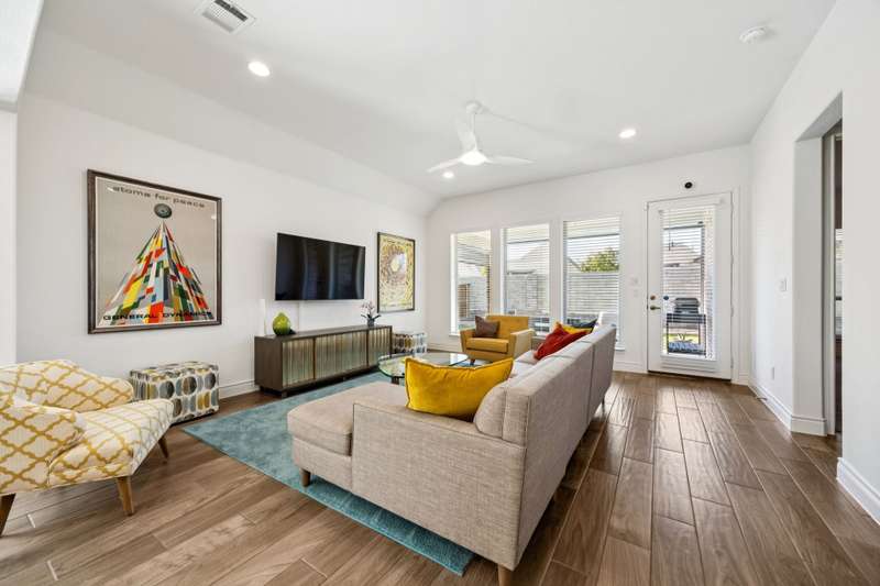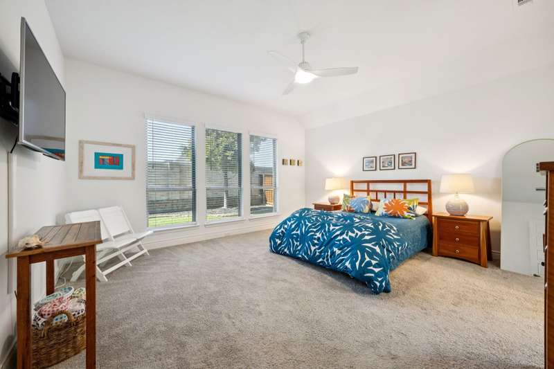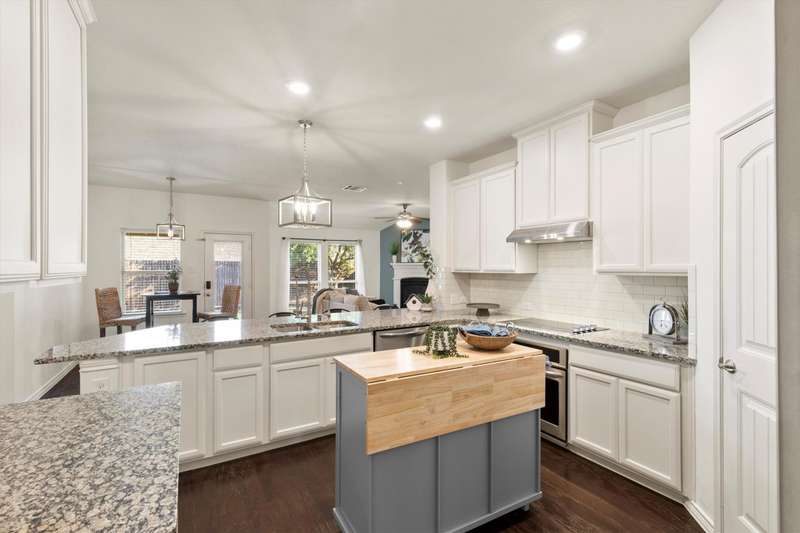Welcome to 8817 Navidad Falls, a beautifully designed Perry home located in the sought-after master-planned community of Trinity Falls. This thoughtfully crafted residence combines modern elegance, functionality and comfort throughout every space. A private office with French doors provides the perfect setting for work or study, complete with built-in cabinets and desk for added convenience. The gourmet kitchen is a true centerpiece, featuring a spacious island, quartz countertops, stainless steel appliances, gas cooktop, under-cabinet lighting and a large walk-in pantry that ensures plenty of storage and prep space. The open-concept family room is bright and inviting, highlighted by a wall of windows that fill the space with natural light and offer seamless views of the backyard. The primary suite is a relaxing retreat with a spacious bedroom and a luxurious bath that includes a garden tub, separate glass-enclosed shower and a walk-in closet. Secondary bedrooms each feature their own walk-in closets, providing ample storage for family and guests alike. Additional highlights include Jellyfish lighting, a mud room located off the two-car garage, a utility room with built-in cabinets and covered patio with retractable screens - perfect for relaxing or entertaining year-round. Living in Trinity Falls means enjoying an exceptional lifestyle surrounded by nature and top-tier amenities. Residents have access to The Club, featuring a beach-entry pool, splash pad, pavilion with fireplace and grills, multiple play areas and parks. The Lodge offers a resort-style pool, fitness center, event lawn and coworking spaces. Miles of scenic trails, tranquil lakes and sprawling 350-acre natural park create the perfect setting for outdoor recreation and community connection. Ideally situated just minutes from shopping, dining and entertainment along the Highway 380 corridor, this home perfectly blends luxury, convenience and community in one of McKinneys most desirable neighborhoods.