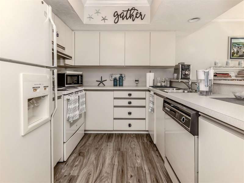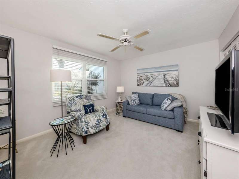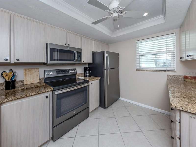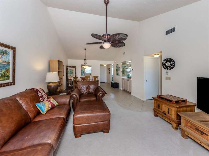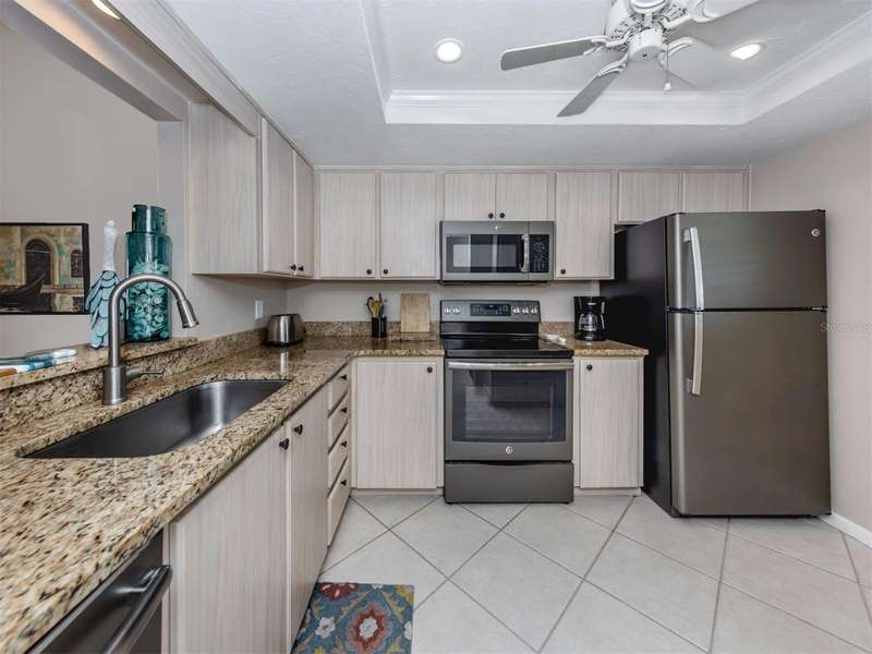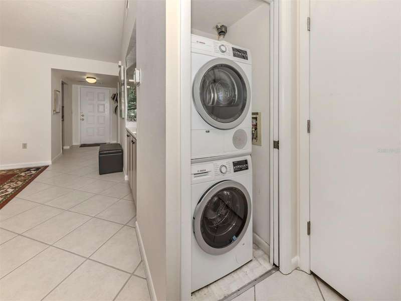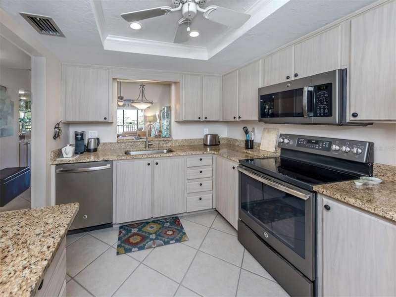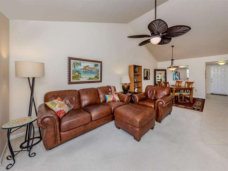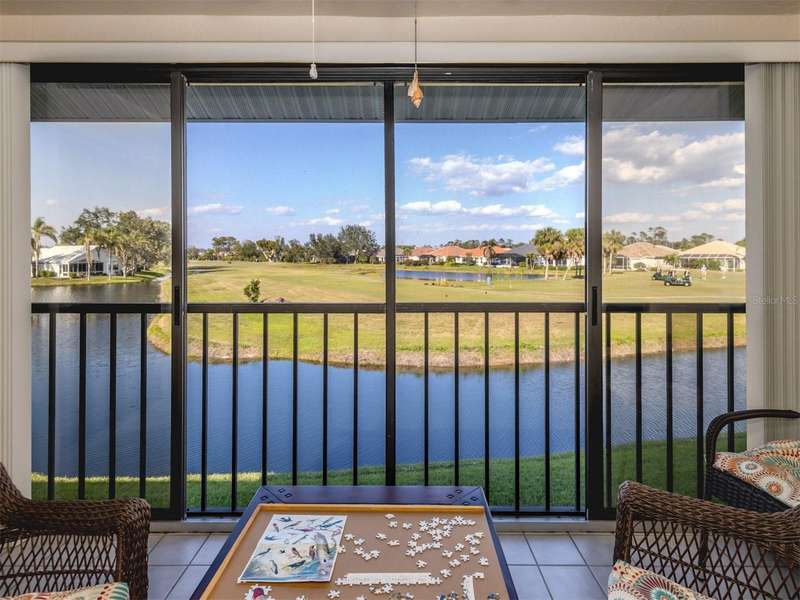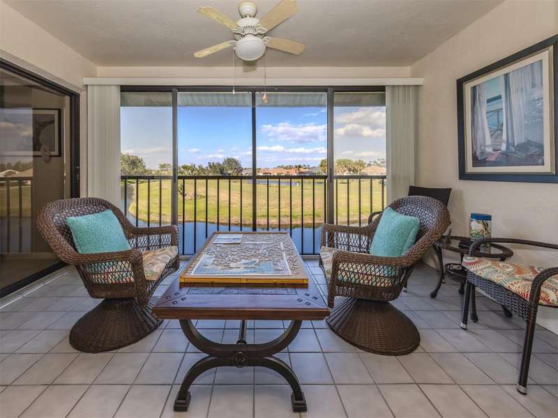 This updated condo offers stunning views of a lake and golf course, complete with turnkey furnishings for a seamless move-in. The kitchen and bathrooms have been stylishly renovated, including flooring, a Euro-style Bosch washer and dryer, and recently replaced windows and roof. Both bathrooms include step-in showers with designer tile and multiple head faucets. Ample storage is available with walk-in closets and a linen closet. The kitchen boasts granite counters and plenty of cupboard space. The HVAC system includes a built-in humidistat. Each unit has its own storage space on-site. The Lakes of Capri is an exceptionally well-managed community, with friendly residents, a large pool, updated clubhouse to enjoy, manicured grounds, and newer carports. Adding to the benefits here, the association fees have actually been reduced lately.