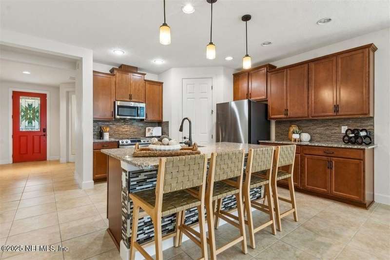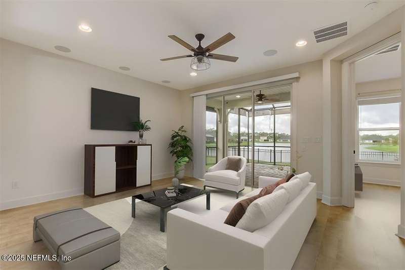 WATERFRONT LUXURY in Amelia Walk! Perfectly positioned on a serene pond lot, this beautifully maintained 3BR/2.5BA home with office/flex space offers peaceful views and indoor-outdoor living. The kitchen features granite counters, large island, tile backsplash, and ample cabinetry - ideal for entertaining. Private owner's suite with pond views, spa-inspired bath, dual vanities, walk-in shower, and large closet. LVP and tile floors throughout - no carpet! Enjoy the expanded enclosed lanai and brick paver patio. Amelia Walk's resort-style amenities include pickleball, tennis, fitness center, clubhouse, and zero-entry pool. Minutes from Amelia Island beaches, golf, shopping, and dining in historic Fernandina Beach. Motivated sellers - bring your offer and make a deal!