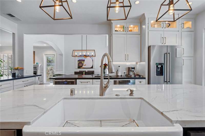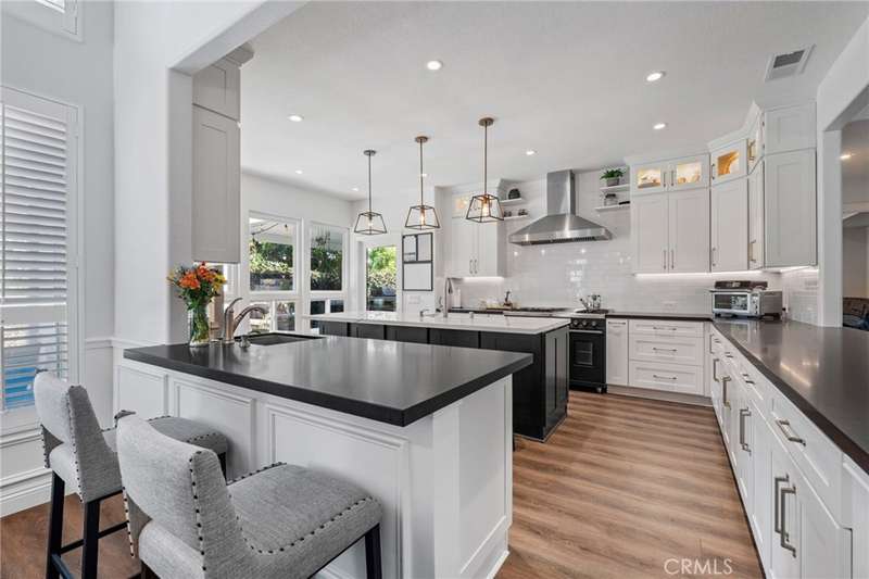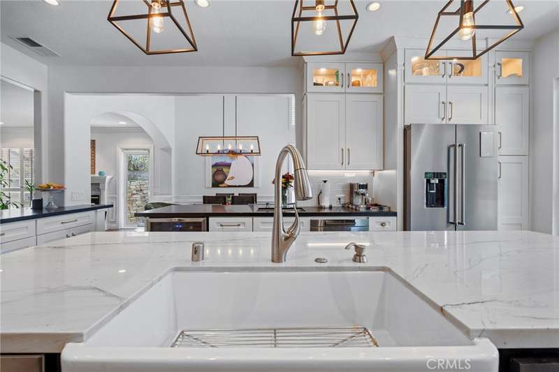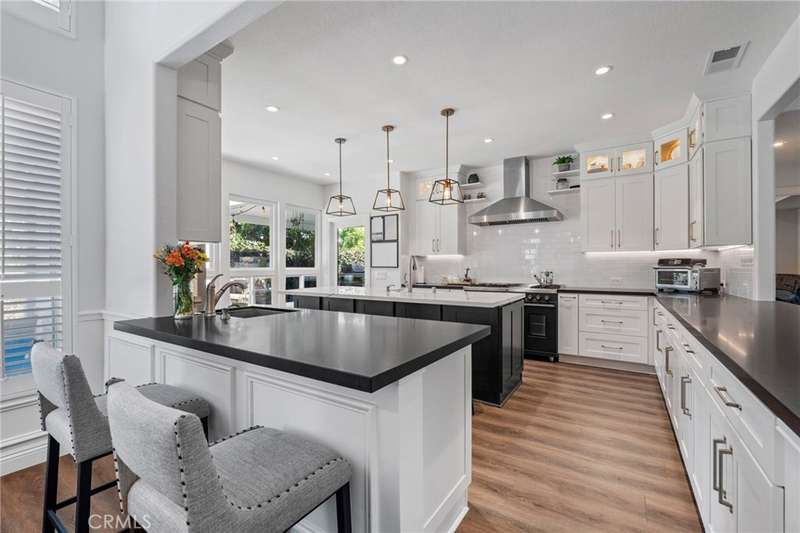 Tucked away in a quiet enclave of the prestigious guard-gated Dove Canyon community, this exceptional multi-generational residence offers unmatched versatility, luxury, and comfort. Beautifully remodeled, the home features a spacious, flexible layout highlighted by a ground-floor in-law suite (added in 2021) with its own living room and cozy fireplace, sliding French doors to the backyard oasis, a large bedroom with dual closets, a full ensuite with tub and shower, laundry closet, and a convenient kitchenette.