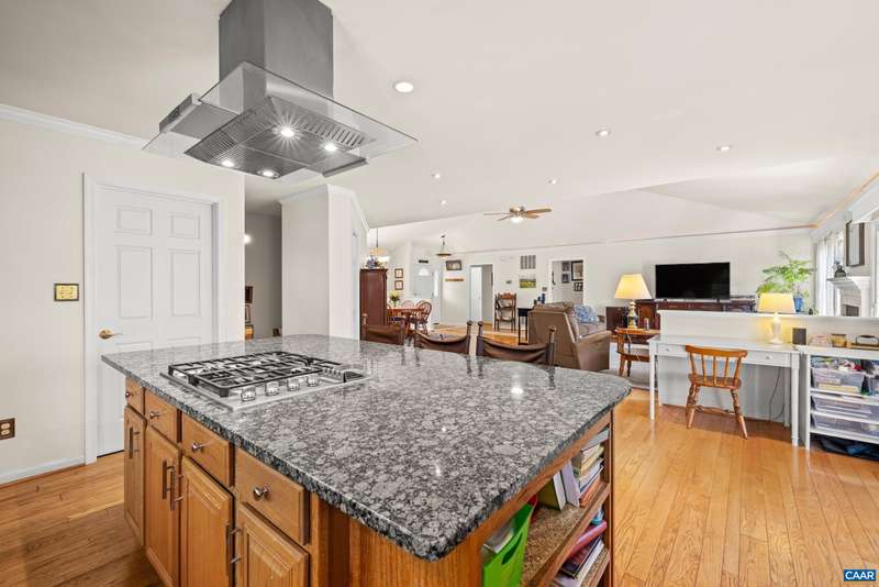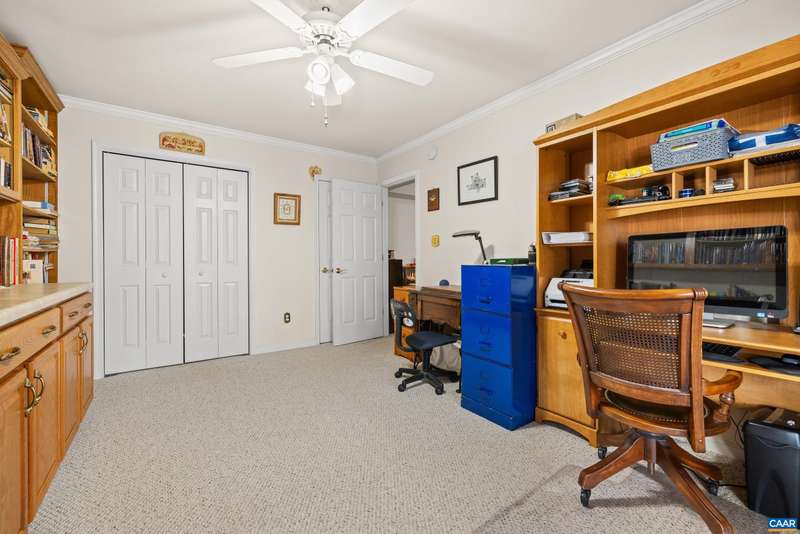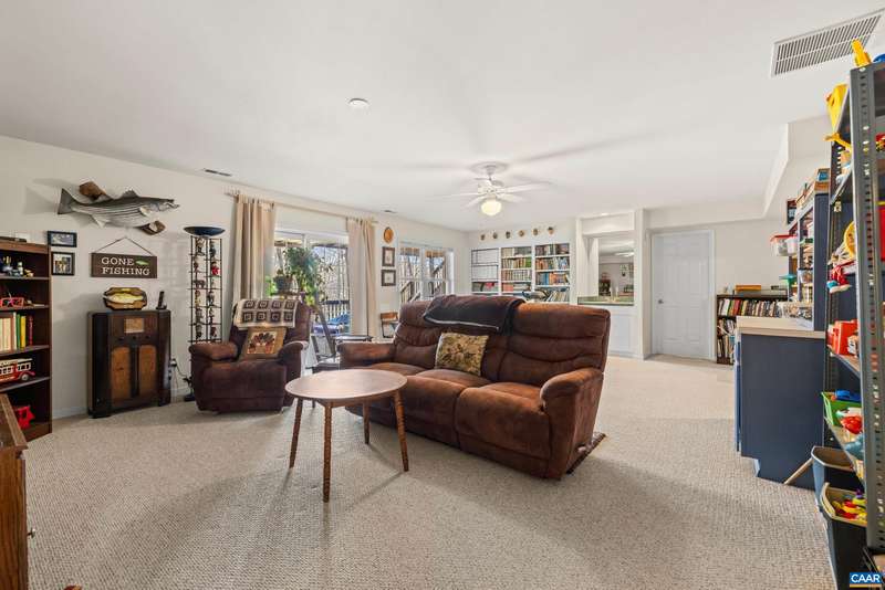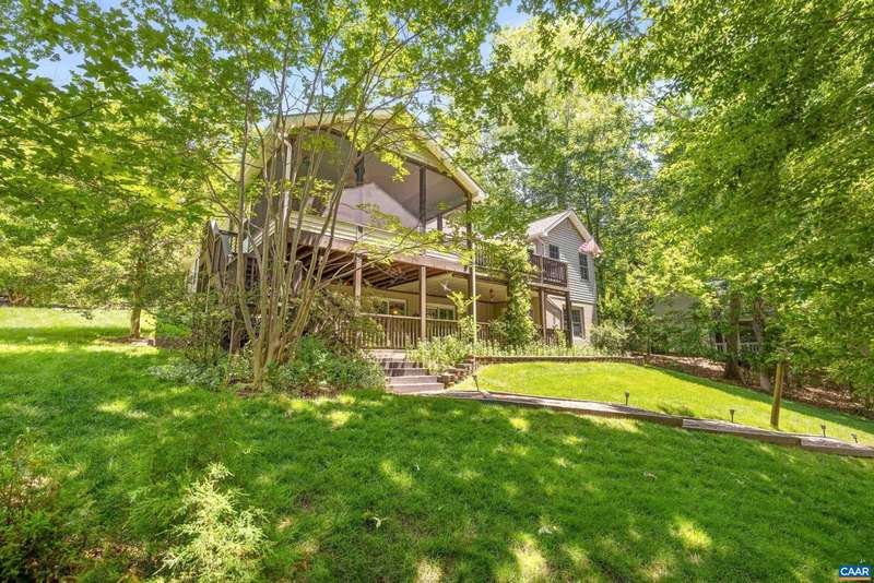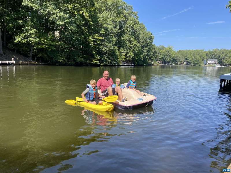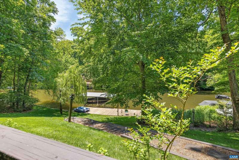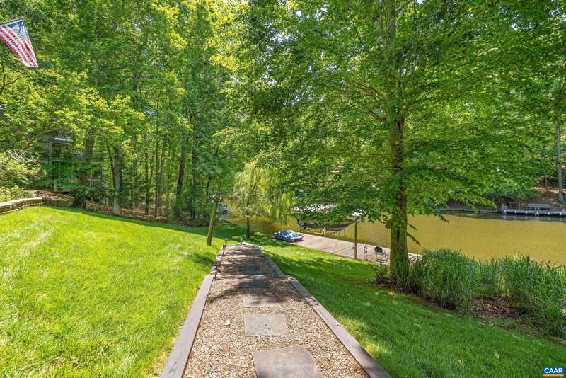 EXPERIENCE THE BEST OF LAKE LIVING! Beautifully maintained waterfront home offers 110' of lake frontage on a peaceful .61-acre lot in a no-wake cove-perfect for fishing, kayaking, swimming, or floating. A large dock w/ boat lift (new in 2022), fishing/ski boat & pedal boat are included. Built by award-winning Southern Homes, this gem features an open floor plan, vaulted ceilings, solid hardwoods & stunning lake views from the cozy living room w/ gas fireplace. Kitchen Aid double oven, Bosch dishwasher, Miele gas stovetop, Samsung French door fridge, Maytag washer. Main-level primary suite includes a spa-like bath w/ heated tile floors, walk-in shower & double vanity. Outdoor living includes screened porch, large deck & screened patio-all overlooking the lake. Terrace level includes bedroom, wet bar, office/craft room (optional 4th bed) & workshop w/ private yard access. Gas hookup ready for 2nd fireplace & outdoor shower. Whole-yard irrigation w/ new pump (2024). New roof, gutters & guards (2023). VA Green lawn service & A/C maint. paid through 2025. Close proximity to Beach 2 & easy access to the water's edge via a lush, grassy backyard-your private lakeside retreat awaits! Must see!