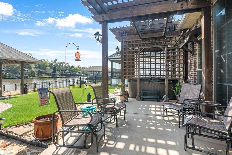 Located in a gated community off the Diversion Canal, this beautiful 3 bed, 2 bath home offers an open floor plan with 12-foot ceilings, crown molding, a cozy fireplace, hot tub and bonus sunroom. The chef’s kitchen features granite countertops, GE Profile stainless steel appliances, and a spacious sit-down bar, complemented by both a formal dining room and a breakfast nook — perfect for everyday living and entertaining. The primary suite is a true retreat with water views, an 11-foot trayed ceiling, a comfortable sitting area, and an en suite bath and a generous walk-in closet. A 2-car garage completes the home. Step outside to your private waterfront oasis with direct access to the Diversion Canal, offering endless possibilities for boating, fishing, or simply relaxing by the water. 30' x 30' boathouse with 3' overhang on all sides. Roof matches main house with fiberglass shingles. Includes two slips: one 20,000 lb. lift and one 10,000 lb. lift (aluminum and stainless steel). 110V and 220V electrical service installed. Enjoy a short boat ride to Lake Maurepas or the Tickfaw River. Offered under appraisal value, this home combines luxury, comfort, and an unbeatable location. Schedule your private showing today and start living the waterfront lifestyle you’ve been dreaming of. **Property has never flooded, even during the 2016 flood** (Closing cost assistance negotiable with acceptable offer)