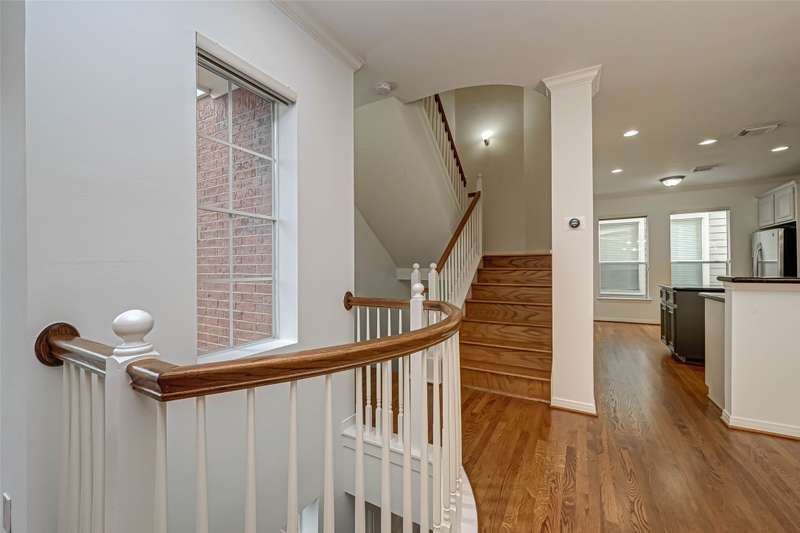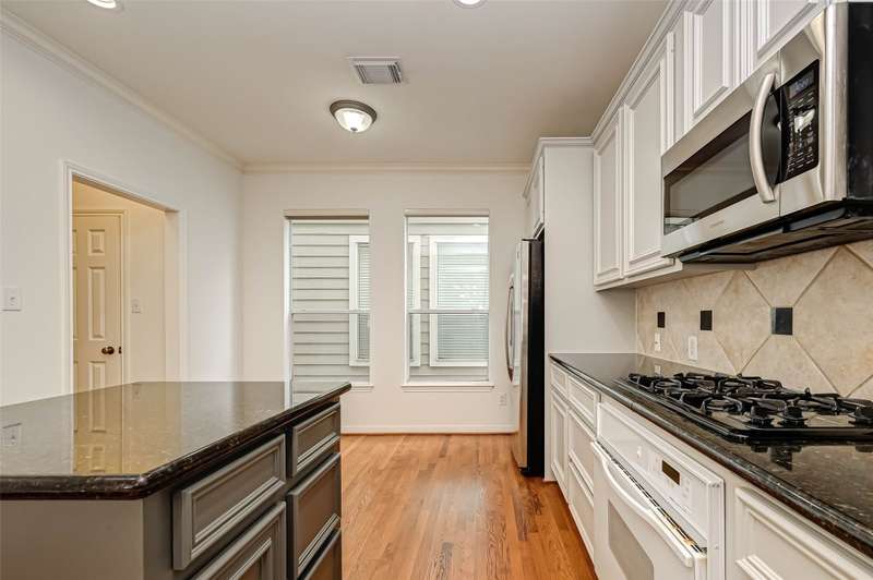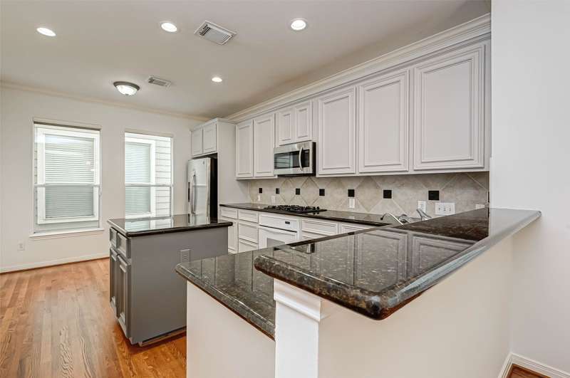 Light filled 3 bedrooms, 3.5 bath townhome in enclave in Midtown. The unit offers easy access to downtown and is right around the corner from W Webster Park, multiple eateries, and bars. The two-car garage has extra shelving for storage. Inside the house each bedroom has an ensuite bath and nicely sized walk-in closets. New carpet installed in all three bedrooms (2025). Additional storage under the stairs and off the foyer. The main entertaining area on the 2nd floor has a full kitchen, pantry, island, room for a large dining table, ½ bath, eat in kitchen, bar and living room all open to each other. On the third floor there is a large primary, one secondary bedroom and utility room. Water, trash, and sewer are included in the monthly rent. There is a small side yard that can be accessed on 1st floor bedroom or through a gate by the garage. If additional parking is needed, street parking is allowed. All information per landlord