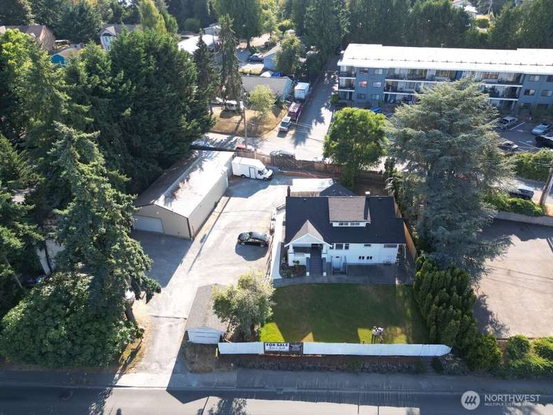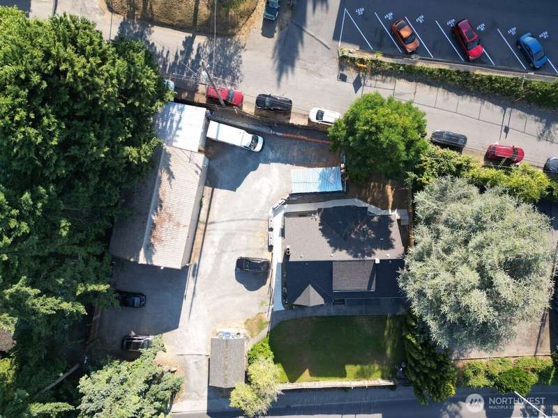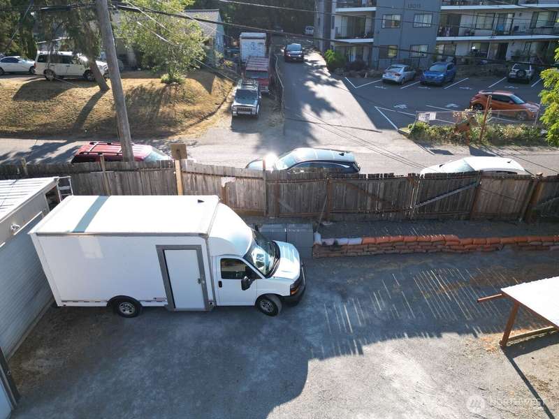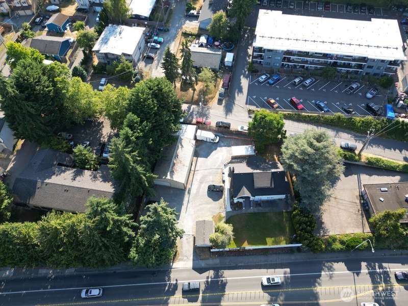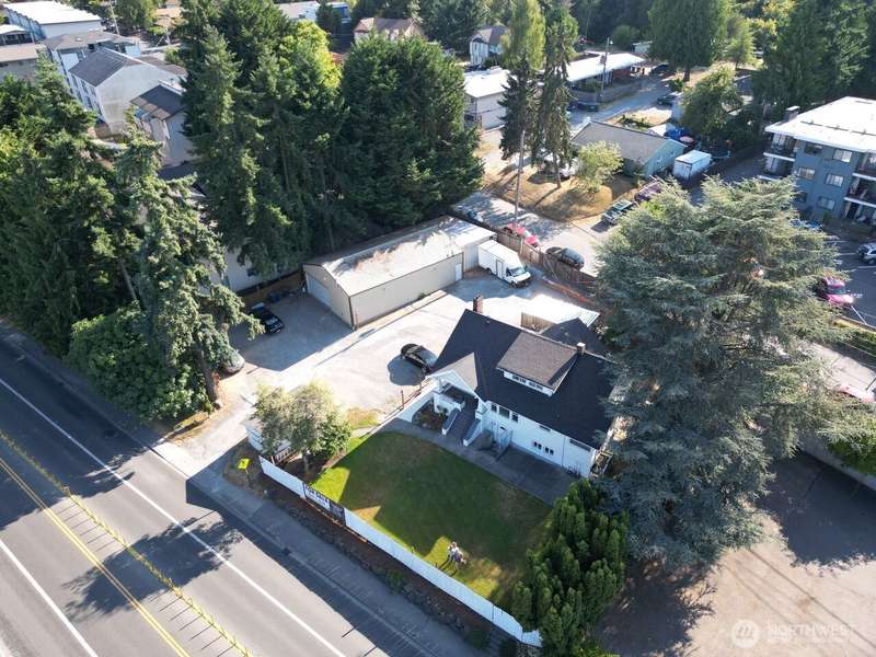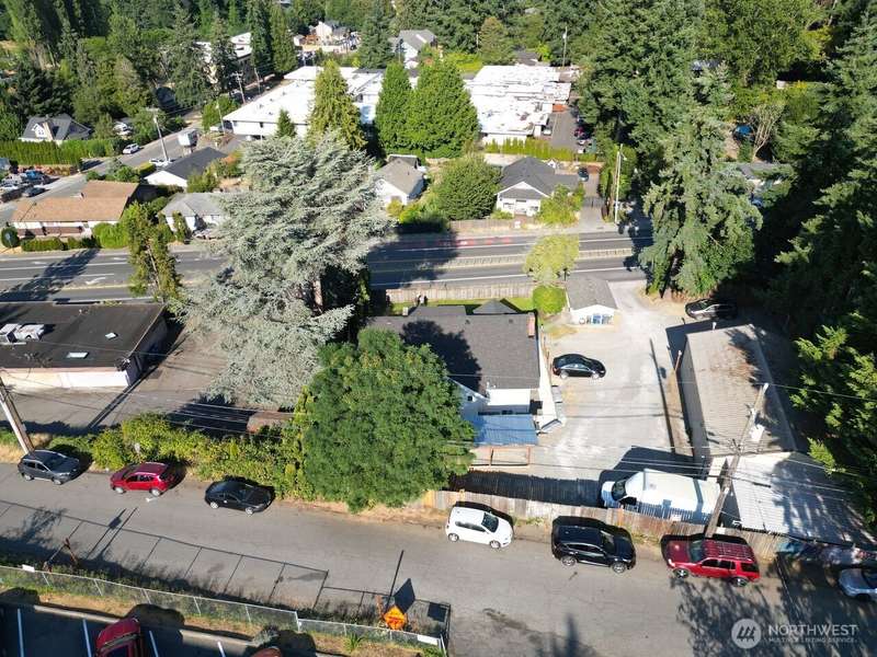 Two tax parcels. Duplex on one and large shop garage on the other. Good for owner occupied. Zoning allows for high density multi use development. Street to street lot.
