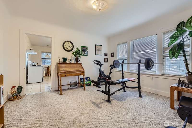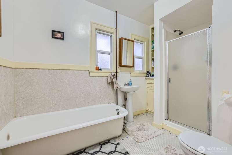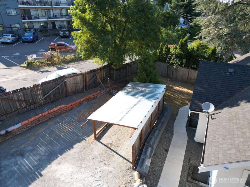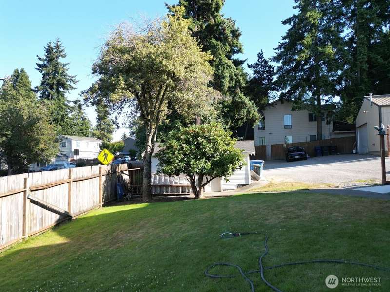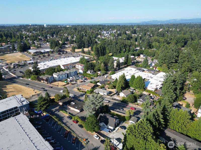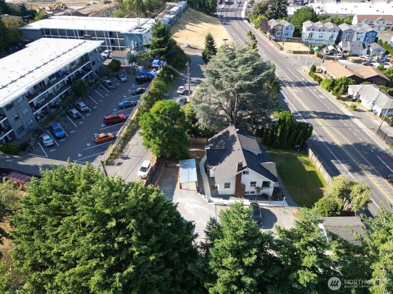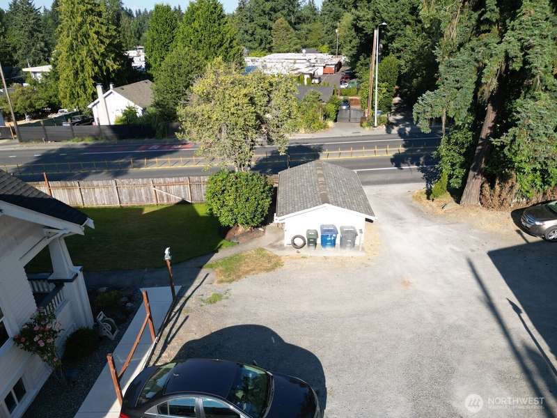 Two tax parcels. Duplex on one and large shop garage on the other. Good for owner occupied. Zoning allows for high density multi use development. Street to street lot.