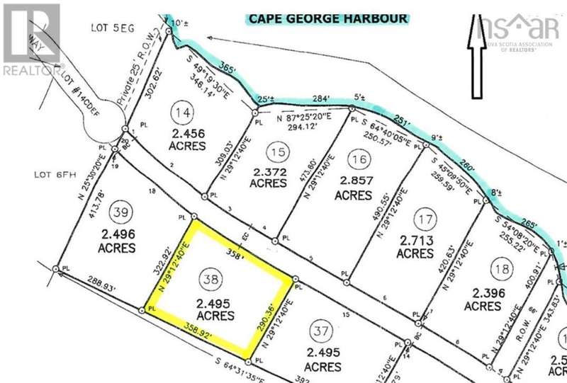 Explore the enchanting possibilities of a 2.5-acre level lot within the prestigious Cape George Estates, inviting you to transform your vision of a dream cottage or home into reality. This captivating property, adorned with a mix of mature poplar and spruce trees, promises a tranquil sanctuary in the heart of nature. Enhancing its appeal is the deeded water access to the pristine waters of Bras D'Or Lake, conveniently located a mere two hundred yards east of the property. With a dedicated parking area and a boat launch, waterfront adventures are just steps away. Positioned along the south side of Wall Street, the property spans three hundred and fifty-eight feet of year-round road frontage. Both power and telephone services pass by, ensuring essential utilities for your future residence. The mostly level terrain gently rises from the road, transitioning to a completely level rear half, offering versatility for construction and landscaping endeavors. A notable feature is the minimal annual fee for road maintenance, preserving the tranquility of this rural setting while ensuring accessible pathways. Situated just five miles north of St. Peters, an oceanside community, this location combines rural serenity with the unique charm of a canal that connects Bras D'Or Lake to the vast Atlantic Ocean. Seize the chance to build your haven in this peaceful yet captivating locale, where the natural beauty of mature trees and waterfront access harmoniously converge. Create a lifestyle that seamlessly blends tranquility with the excitement of living by the water, all within the exclusive embrace of Cape George Estates. Your dream property awaits, promising a perfect balance of nature and convenience. (id:2494)