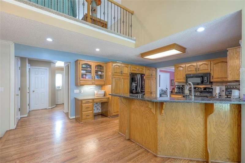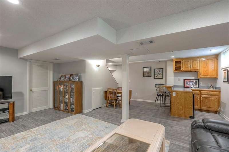 PRICE IMPROVEMENT And even BETTER THAN BEFORE!! Seller has taken the extra steps to make this house move in ready for the next buyer! Buyers backed out and no Fault of Seller! Perfect location just minutes to award winning Blue Valley Elementary, Middle and High School!! The lower level has been completely redone with beautiful wide plank LVT and a custom bar with floating shelves, refrigerator and sink. Perfect for entertaining! This charming 4-Bedroom home offers a perfect blend of comfort and privacy, situated on a quiet cul-de-sac. Enjoy lush landscaping, a fenced yard and a deck for outdoor relaxation. This meticulously maintained family home is ready for you to make it your own! Inside you will find Spacious bedrooms, 2 full and 2 half baths, large closets, an eat-in kitchen and a formal dining room to host those important family functions. The finished Lower level is ideal for entertaining, featuring a half bath and wet bar, perfect for game nights and movie marathons! This home has so much new such as a newer roof, a sump pump with battery back-up, a sprinkler system and the HVAC and Hot Water tank were replaced in 2024! For added convenience, the kitchen refrigerator and washer and dryer are included. Don't miss the opportunity to move into a well-cared for home with essential updates! This home is ideally situated near shopping and restaurants, making it convenient for everyday needs. Plus, it's in close proximity to Blue Valley Schools, making it a great choice for families. Enjoy the comfort, convenience and community! And its Move in Ready!!