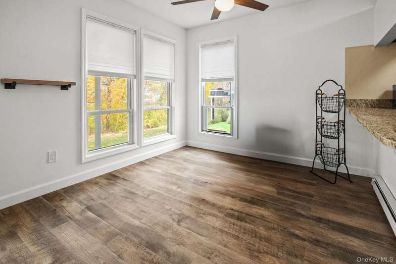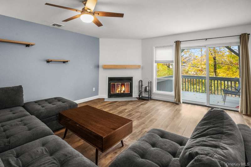 Experience modern comfort and everyday convenience in this beautifully renovated first-floor condo in Woods II that lives like a two-bedroom! Featuring a modern granite kitchen with stainless steel appliances, sun-filled living room with decorative fireplace , and dining area with access to a private deck. Freshly painted with new flooring, trims, moldings, doors, two renovated bathrooms, and a brand-new HVAC system. Parking, snow removal, lawn maintenance, water, sewer included. Ideally situated minutes from Yorktowns shopping centers, bike path, parks, Turkey Mountain, indoor pickleball courts, swim and fitness centers, and the Taconic State Parkway make this an ideal location. No smoking/vaping indoors. Pets considered with additional rent. Tenants should have 700+ FICO scores, income to support 32x monthly rent, good savings and carry renter's insurance. Pets allowed. May be rented partially furnished. Parking space #27 directly out front.