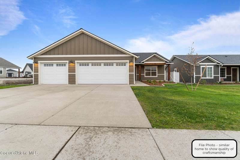 To be built. Extended garage with window, gas fireplace, quartz countertops throughout, covered front and rear patio, vaulted ceilings, 95% gas furnace, Nest thermostat, tankless gas water heater, gas to rear patio, gas range, LVP flooring every where except bedrooms and closets, garage door opener, garage man door and front yard landscaping and sprinkler system. The owner's suite enjoys a private position, complete with an ensuite bath and an abundance of closet space.