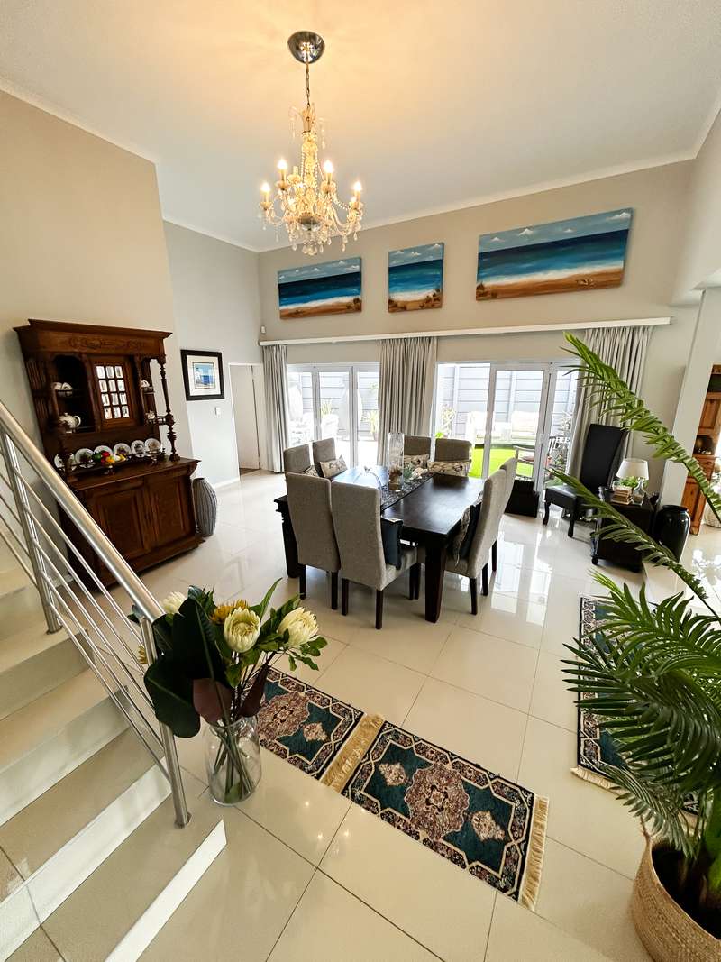 Just a short 2-minute walk from the beach with private direct access, this exceptional home offers a seamless blend of sophistication, space, and effortless coastal living – perfect for entertaining or simply enjoying the tranquillity of one of Cape Town’s most desirable suburbs. 5 spacious bedrooms, ideal for families or hosting guests 4 elegant bathrooms with premium finishes Private entrance leading directly to the beach Beautifully manicured garden for outdoor relaxation Expansive living and entertainment areas with ocean and mountain views 3 garages and dual entrances for convenience and security Advanced alarm and security system for peace of mind Quiet, well-established street with a renowned junior school around the corner This is a rare opportunity to own a luxurious, well-appointed home in Melkbosstrand – where beachside living meets refined comfort.