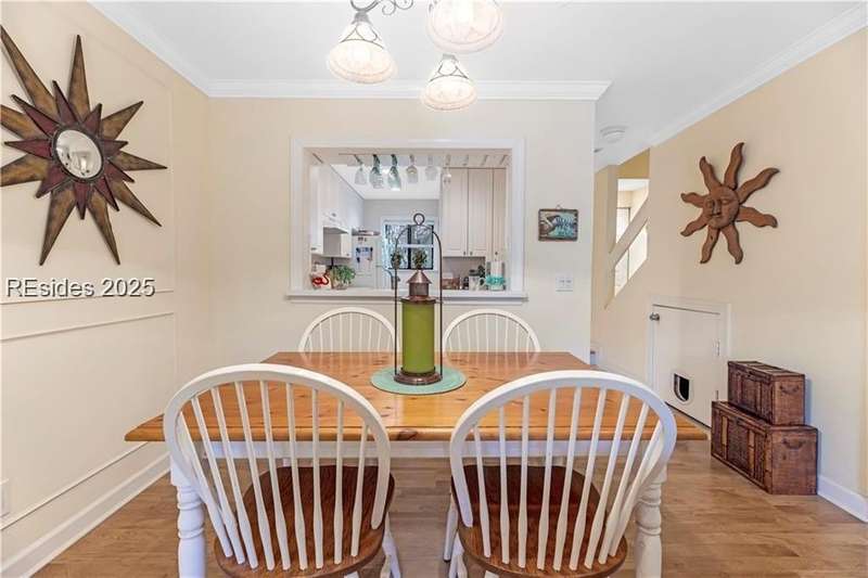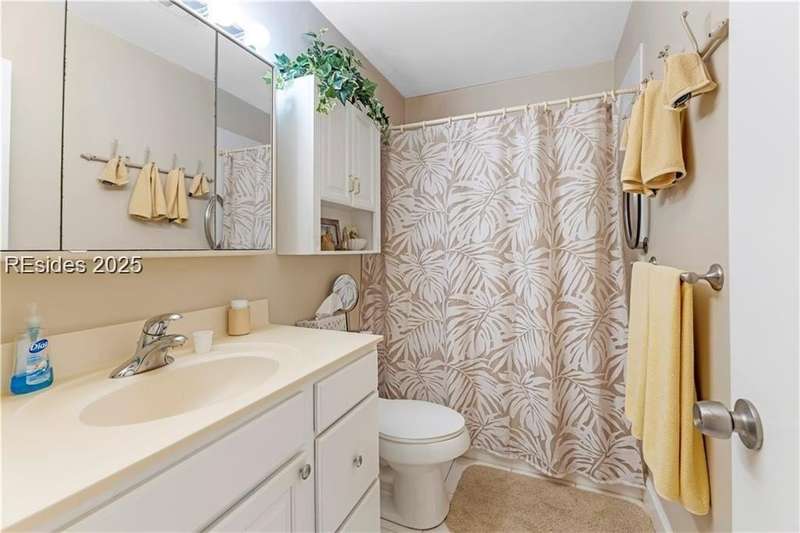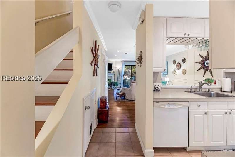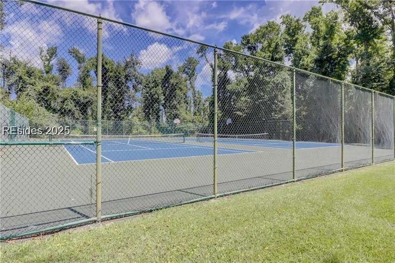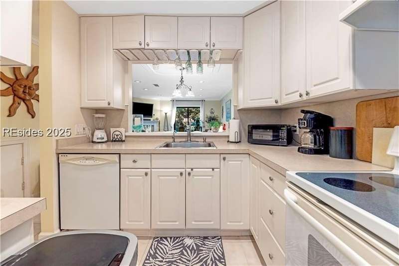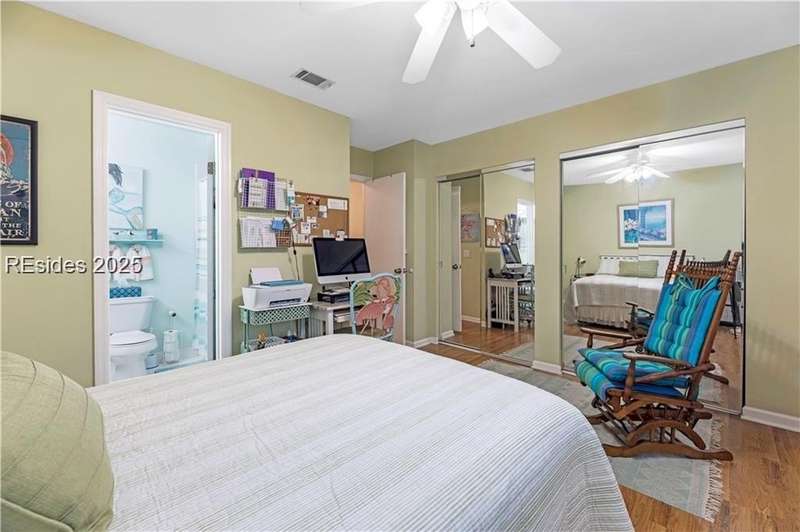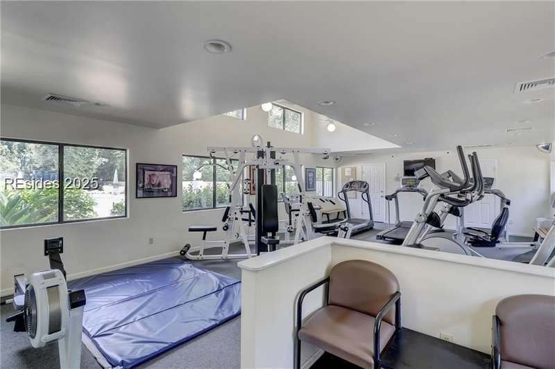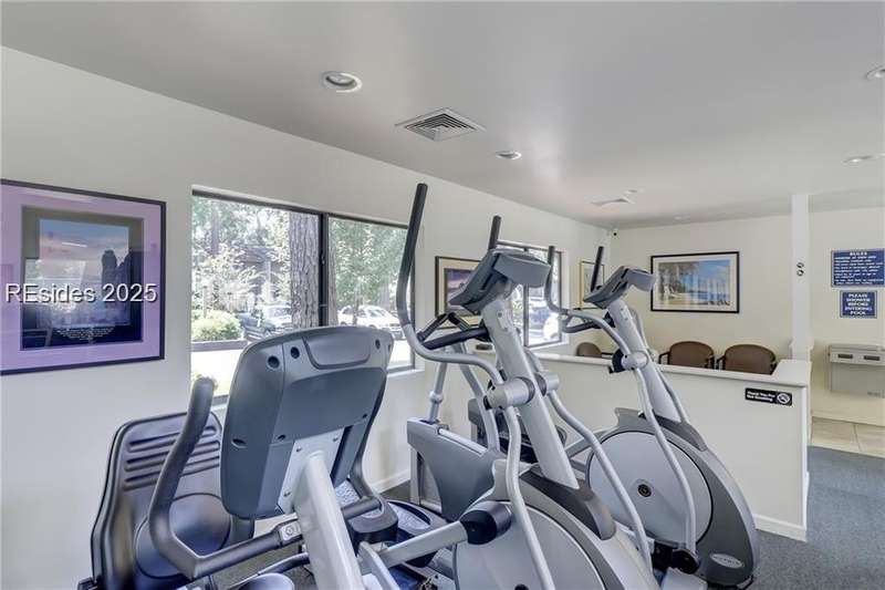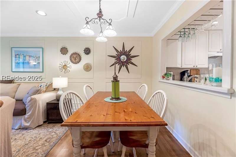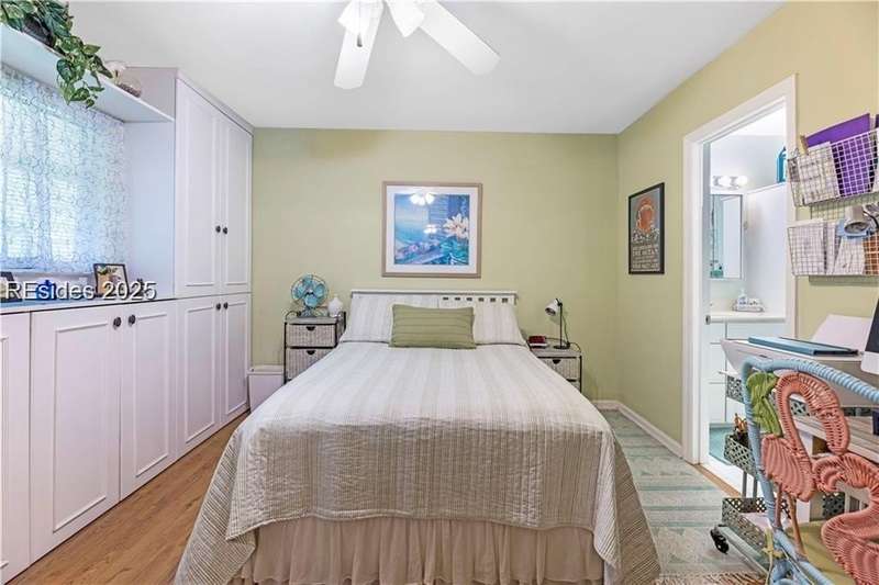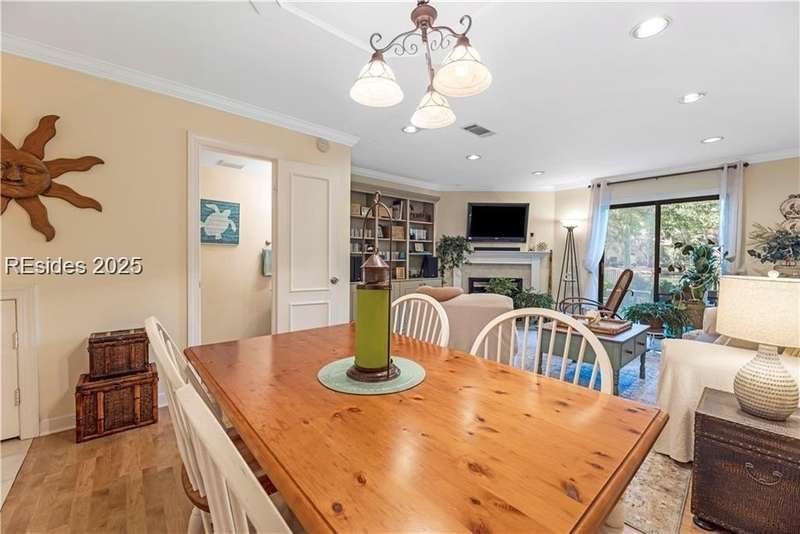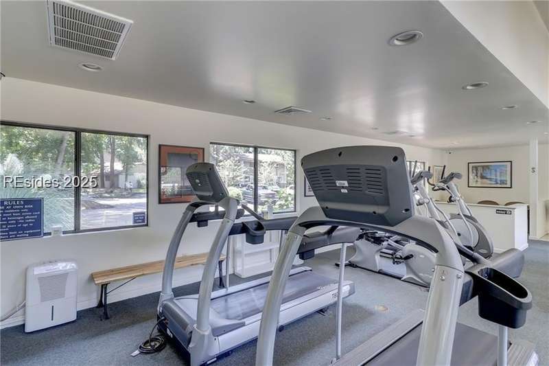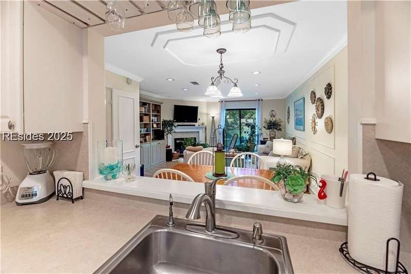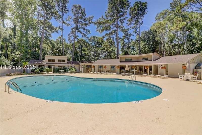 Enter the quiet and charming gated villa community of Woodlake Villas to view this beautifully maintained townhome. Step inside to peaceful living with view of lagoon with fountain, flower gardens, and extended outdoor living area. Open living area with fireplace. Upstairs has 2 bedrooms and 2 baths with nice separation and a linen closet. Primary bedroom has view of the lagoon. Second bedroom has a queen size murphy bed with a pull-out table when the bed is not in use! Quiet community centrally located on the island with convenient location to all Hilton Head Island has to offer!