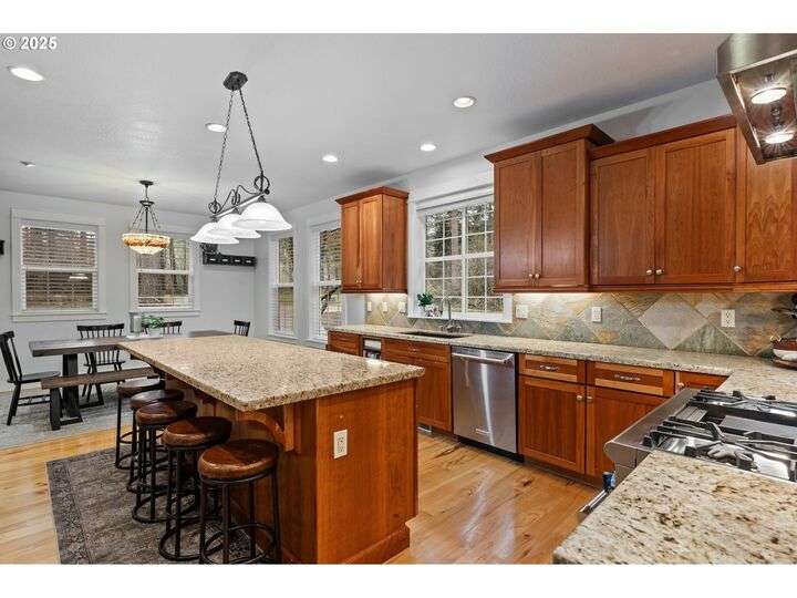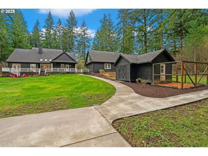 A rare blend of function, flexibility, & peaceful seclusion, this 4-bed (primary on main), 3.5-bath custom craftsman with extra bonus/media room, main floor executive office, plus 1180 sqft detached ADU, on a private and flat stretch of land just minutes from downtown Battle Ground. Whether you're seeking a multi-use property, multigenerational living, or an unforgettable event setting, this one checks every box. The main home offers hardwood floors, a stunning two-story stone fireplace, vaulted ceilings, & thoughtful upgrades throughout. The open-concept kitchen features granite countertops, high end stainless appliance package,& plenty of space for gathering. Upstairs, a stunning built-in library offers a quiet retreat. Central vac, dual water heaters, instant hot water, and walk-in closets in every bedroom add comfort and convenience. The oversized 5-6 car garage includes a completely separate entry, fully equipped apartment above with soaring ceilings—perfect for extended guests, income potential, or flexible living. A new 2,880 Sport court/shop/barn expands the possibilities even further! Outfitted with glass roll-up doors, a pellet stove, string lights, and wide-open space, it's ideal for indoor events, recreation, or creative work. Just behind the barn, there’s space to add parking or build to suit your needs. Outdoors, a large concrete patio surrounds an above-ground salt water pool that could be easily removed—unlocking seamless indoor/outdoor flow for weddings, retreats, or private gatherings. A fire pit, raised garden beds, & a storage shed with chicken coop add both charm and functionality. Century link fast speed internet, smart locks, and a long list of recent upgrades—from fresh interior and exterior paint to paved access—this home is truly move-in ready. No HOA, timber value potential, and room to roam, but just minutes from highly rated Cam Academy and sought after River Home link, this is more than a home; it’s a lifestyle few homes can offer!