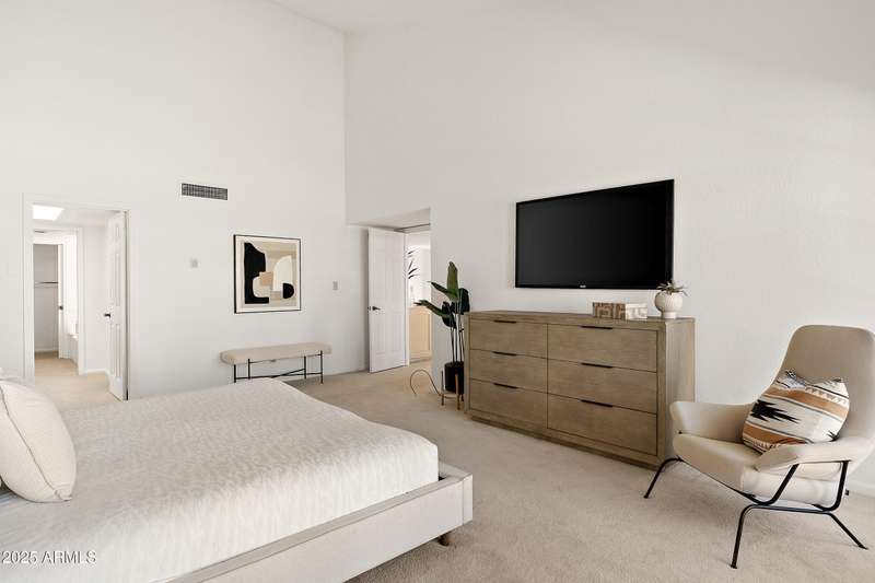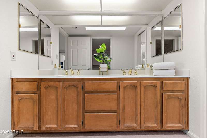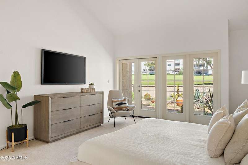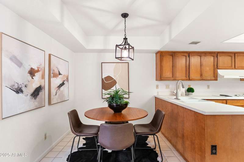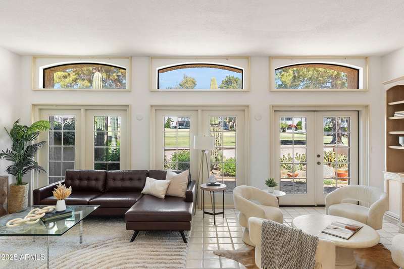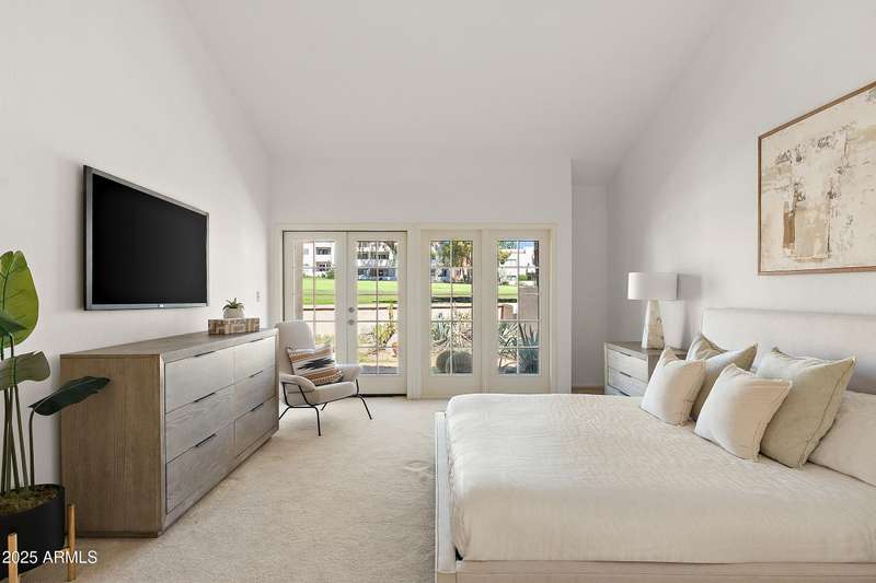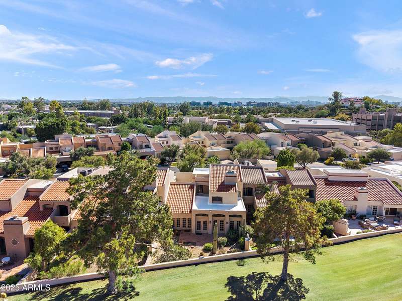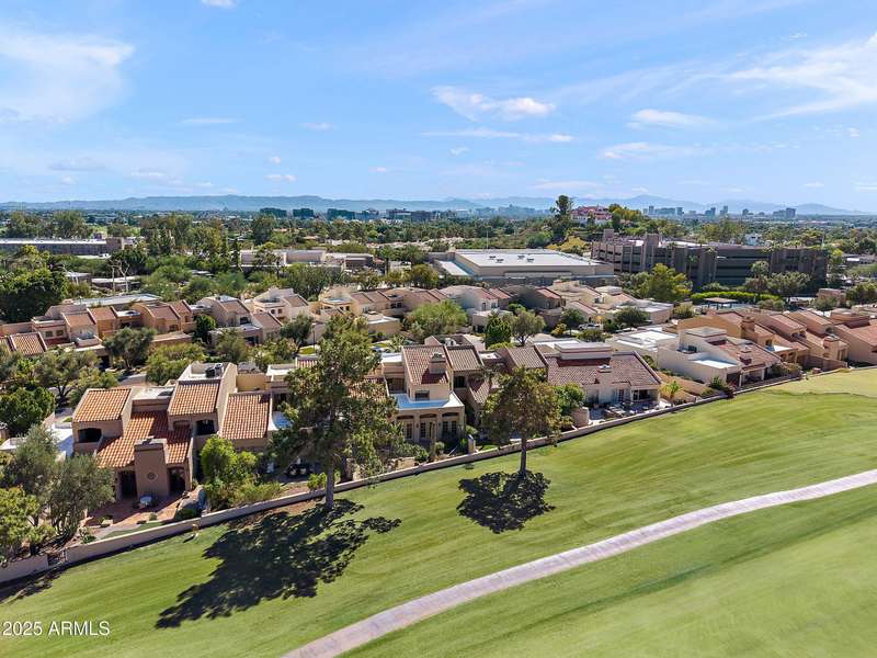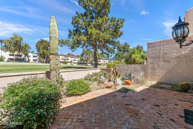 Enjoy a luxury lifestyle in this 4 bedroom 3 bath townhouse located on the renowned Arizona Biltmore Links Golf course with fabulous mountain views in the highly desirable gated community of the Biltmore Square. Enter through a beautiful Foyer with kitchen open to the formal dining, wet bar and two way fireplace. The oversized living area overlooks the backyard with endless views. The primary suite features dual sinks, a walk in closet and French doors leading to back patio. This split floor plan features a second downstairs bedroom and bath perfect for your guests. The upstairs includes 2 bedrooms, 1 bath with doors opening to the outside areas. Just steps away from fine dining, upscale shopping and all The Arizona Biltmore Resort and Spa has to offer.