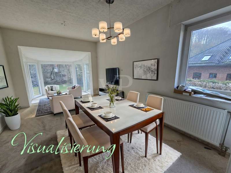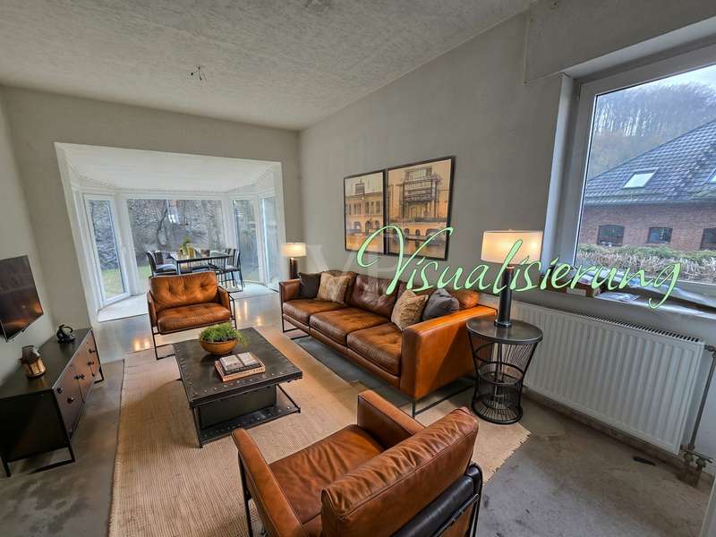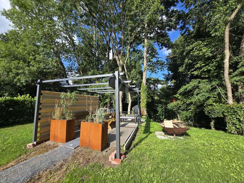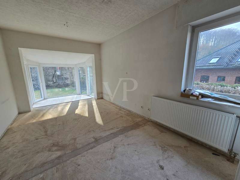 "First occupancy after modernization - top property with conservatory, terrace, balcony, sauna and new furnishings" on a beautiful plot with access to the river Bere in Ilfeld Harztor A spacious architect's house from 1994 is for sale on one of the most beautiful plots in the rural community of Harztor in the Ilfeld district. On a plot of approx. 1,200 m², central and secluded at the same time, the house is located directly on the edge of the forest with the small river Bere in the immediate vicinity. With a living space of around 250 m², this property is suitable both as a larger detached house with granny apartment in the attic and guest apartment in the basement and as a multi-generation house or similar. The building, which was constructed in 1994, was extensively modernized and renovated between 2023 and 2025 and is now a high-quality first-time-occupancy property. For example, a central heating system was replaced and renewed in 2024. However, the current and valid energy performance certificate is still based on the previous heating system, which means that improved heat gains can still be assumed. In addition to the new gas central heating system, there is a new wood-burning stove on the first floor and in the attic, which provide cozy warmth on cold days. In total, the property consists of six spacious rooms, three bathrooms, three kitchens and a new sauna in the basement. The extensive renovation work carried out between 2023 and 2025 has given the house an upscale interior that meets the highest living standards. The attic and basement have been completely refurbished to date. In addition to the modernization of the bathrooms and the replacement of the floor coverings, extensive wall work was also carried out, as well as new windows, which are equipped with an electric shutter control and complement the modern living experience. In addition, the balcony on the top floor was extensively renovated and the terrace on the ground floor was prepared for this purpose. The top floor and basement also received new fitted kitchens and modern bathroom fittings. On the first floor, the refurbishment has progressed with the conversion of the entrance area and the renovation of the bathroom and kitchen. The spacious sleeping area is connected to a conservatory, the living area has a new large triple-glazed window/sliding door element and provides direct access to the south-facing terrace. A new fireplace has also been installed in the living room, creating a cozy atmosphere. The floor and wall covering work as well as the bathroom renovation on the ground floor have not yet been completed, but at the same time open up the possibility for your own personal design ideas. The outdoor facilities have also been upgraded. In addition to the new partially covered outdoor seating area facing Bereufer, its width also invites you to linger outdoors and underlines the advantages of this particularly idyllic garden plot. At this point, it should not go unmentioned that there is a newly constructed backwater valve to protect the house against water ingress. There is also ample parking space on the property. This attractive architect-designed house is ideal for buyers with high space requirements as well as demands on location and furnishings for a wide variety of living concepts. The extensive modernization work that has been started and completed offers a high level of comfort and functionality. Please do not hesitate to contact us for a viewing or further information.