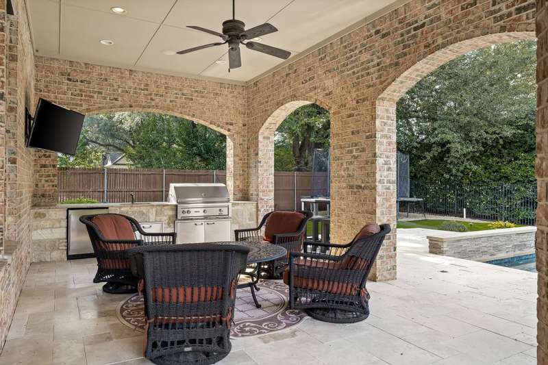 Discover an extraordinary estate that effortlessly blends timeless architecture with resort-style living. Nestled on over half an acre and backing to the prestigious Preston Trails Golf Course, this residence offers a true sense of retreat while remaining close to the citys finest amenities and top-tier private schools and Bent Tree Country Club! A dramatic grand entry sets the tone, leading to soaring ceilings, graceful arched walkways, and walls of windows framing the serene outdoor sanctuary. The heart of the home is the chefs kitchen, boasting a Sub-Zero refrigerator, Wolf commercial-grade range, a generous island with seating, and a butlers pantry that connects seamlessly to the formal dining room. Designer lighting accents every space, creating a refined yet inviting atmosphere. Designed for both intimate gatherings and large-scale entertaining, the home features a bar and wine cellar, a media room, and an upstairs game room with a wet bar. The thoughtful floor plan includes both the luxurious primary suite and a secondary bedroom on the main level. The primary retreat is enhanced by a spa-inspired bath with a separate soaking tub and shower, and a custom-designed closet system. Step outside to a private oasis where a modern pooljust a few years oldanchors the backyard. Entertain under the covered patio with a built-in gas grill and refrigerator, enjoy the play yard, or refine your short game on the putting green. This outdoor haven is designed for year-round enjoyment and effortless entertaining. A rare offering of elegance, comfort, and location, this property delivers an unmatched lifestyle backing to Preston Trails.