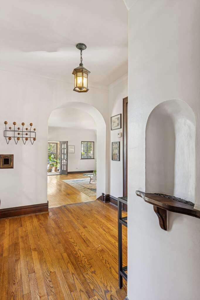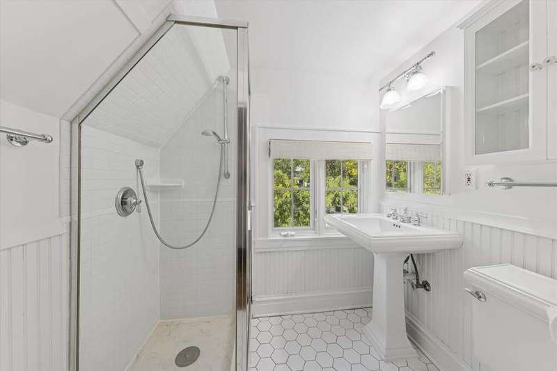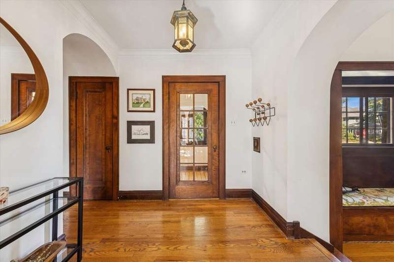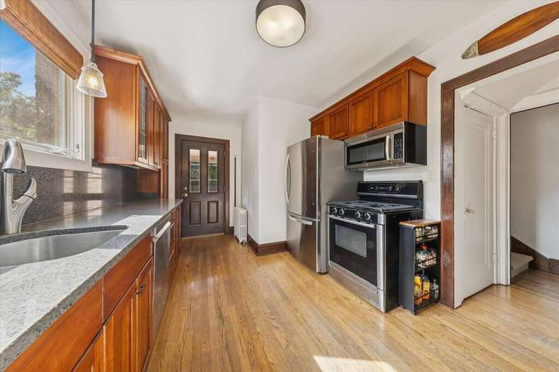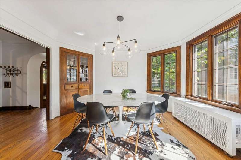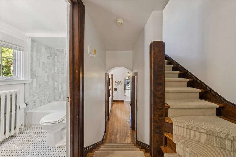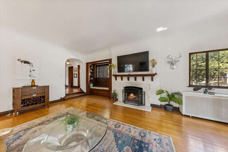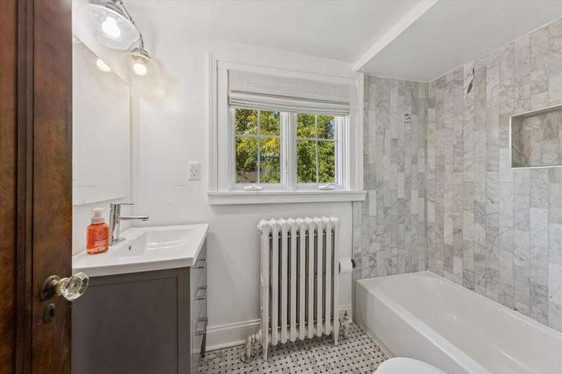 Welcome to 400 W Cossitt- an English styled home which seamlessly blends period architectural details with modern appointments, on a lush, professionally landscaped corner lot. Situated in the highly desirable Historic LaGrange district, this home offers all the conveniences of a walk to everything location (Cossitt Elementary school, restaurants, library, shops, parks and commuter train). Charm and character everywhere you look: hardwood flooring throughout, rich millwork, arched entries, French style windows, leaded glass, built in China cabinet and shelving. From the moment you step inside, the cozy and bright entry leads you to the foyer and sets the stage for this special home. The living room features a plaster cove ceiling, a fireplace with marble surround, a charming bench framed with open shelving, French style windows which invite tons of natural light. A few steps way, a serene three-season porch with views of the tree lined street serves as a perfect hideaway or a home office. The statement chandelier and built in China storage hutches adds to the atmosphere of elegance in the formal dining room. Just steps away is the updated galley style kitchen with granite countertops, custom cherry cabinetry, an open pantry closet, and stainless-steel appliances - including newer (2024) LG Refrigerator and (2024) Bosch dishwasher. The second level features a generous primary suite with a shared bath, which was completely remodeled in 2021. This remodel project included adding new copper piping, new plumbing fixtures, new vanity, new floor and wall tile. The space is finished with a walk-in closet, and two additional closets. The third level hosts three additional bedrooms, including one that could serve as ana secondary primary suite (with easy access to unfinished attic- great for storage) and a classically designed additional bath, featuring heated mosaic tile flooring, beadboard wainscoting, walk in shower, pedestal sink. Bring your vision to the unfinished basement which provides direct access to the backyard and laundry space (with newer GE washer/dryer added in 2021). Attached two-car garage has new garage door and new Liftmaster garage door system with myQ technology (2024). This gem is in the heart of everything- it will not last long!!