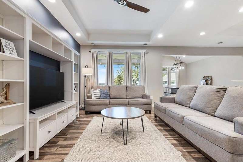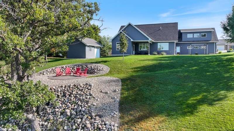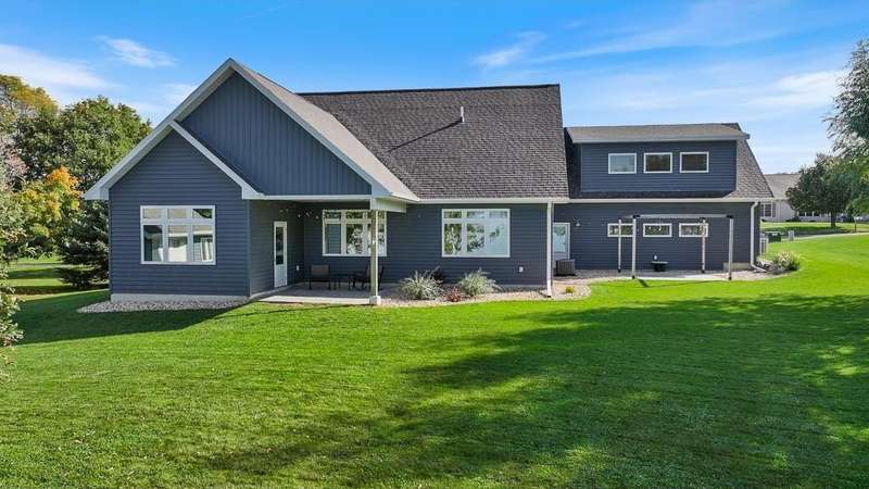 Welcome to this stunning lakefront property on Lake Hendricks. Set on a half-acre lot with 88 feet of shoreline, this home was custom-built in 2018 with a thoughtful 2021 addition. Built with pride by local contractors using locally sourced materials, the home reflects quality and craftsmanship at every turn. Offering the feel of new construction without the price tag, it showcases high-end custom features and finishes that are already complete and ready to enjoy. The main level is designed for lakeside living with an open-concept layout that features 9-foot ceilings and floor-to-ceiling windows framing breathtaking views of the water. The dining area opens to a covered stamped concrete patio, perfect for summer gatherings and sunset dinners, while the kitchen, dining, and living spaces flow seamlessly together. The kitchen features slow-close cabinetry, quartz countertops, tile backsplash, stainless steel appliances, and a large pantry. The primary suite is a private retreat featuring dual vanities, two walk-in closets, and a floor-to-ceiling tiled walk-in shower. Another bedroom, full bath, and a beautifully designed laundry area complete the main floor. Custom upgrades include: all bathrooms featuring tile surrounds, 8-foot doorways w/custom built doors, trayed ceilings, transom windows, in-floor heat capability, designer lighting, soffit outlets with switched lighting, and numerous other thoughtfully crafted architectural details that elevate the home throughout. Car and hobby enthusiasts will appreciate the four fully finished garage stalls. The 2021 addition expanded the original home with a heated and cooled 28x30 garage space and an upper loft, complete with its own climate controls. This versatile area can serve as a third bedroom, entertainment space, office, or guest suite (with private access). Outside, the home continues to impress with 3 patio spaces, including one designed for a hot tub and another custom-built gathering space by the water’s edge. A 12x18 lakeside shed with concrete floors, power, and an overhead door provides the perfect spot for golf cart parking and storage of lake toys. A lawn sprinkler system keeps the yard beautifully maintained with ease. With in-floor heat capabilities and strategic design throughout, the home is as functional as it is beautiful. Perfectly located on a quiet dead-end road within city limits, you’ll enjoy the rare convenience of city water, sewer, and utilities—no septic or rural water to maintain. And beyond the property itself, Lake Hendricks is a year-round treasure, offering fishing, boating, and water sports in the summer, along with ice fishing and numerous events in the winter. Combining the luxury of a custom build with the convenience of being fully finished and move-in ready, this 3-bedroom, 3-bathroom, 4-stall garage home offers open living spaces, multiple areas to entertain, and unmatched lakefront living on Lake Hendricks. Schedule your showing today!