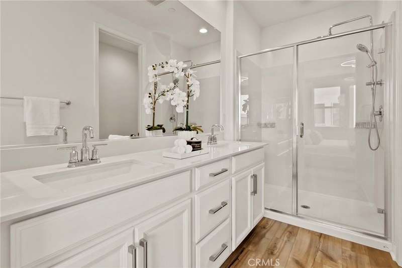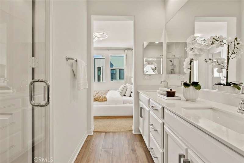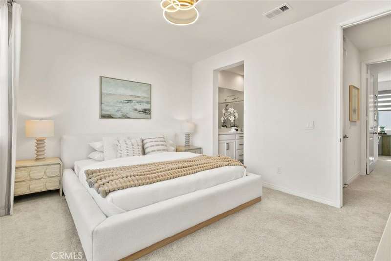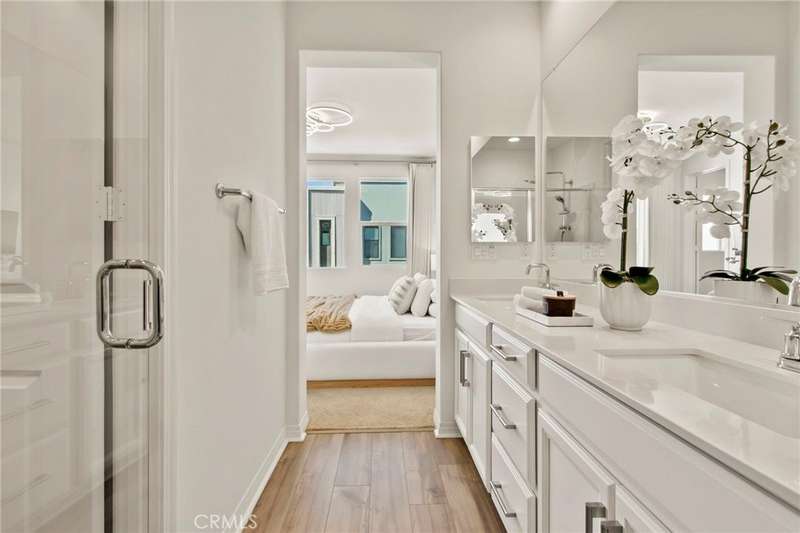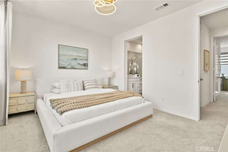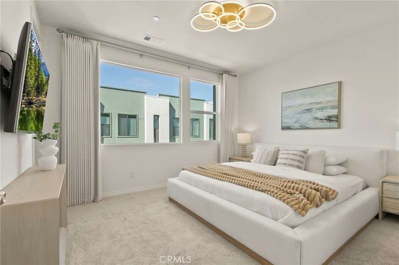 Discover modern living in the highly coveted Irvine Great Park Neighborhood with this bright and spacious 2-bedroom, 2.5-bath home built in?2022. With 1,576?sq?ft of open-concept space across three thoughtful levels, this residence offers both style and practicality. Step inside to gleaming luxury vinyl flooring in all communal areas, carpeting in the bedrooms, high ceilings and recessed lighting that frame a clean, luminous environment. The main living level flows seamlessly into the upgraded kitchen featuring premium KitchenAid wall-mount ovens and smart-appliance convenience. Both bedrooms feature their own ensuite baths and walk-in closets, an ideal setup for comfort and privacy. Smart-home lovers will appreciate the fully integrated system: smart dimmer switches throughout, a premium Eufy fingerprint door lock, and a MyQ smart garage opener, all designed for easy, modern living. Outside, the home is equally impressive. A paid-off solar panel system keeps utility costs low. The two-car direct-access garage includes epoxy flooring, LED accent lighting, overhead SafeRacks storage, and a dedicated Emporia car-charging system. Inside, amenities extend, the tankless water heater with hot-water circulation pump and sensor valve ensures instant comfort without waste. The front yard is professionally landscaped creating a beautiful courtyard that invites quiet conversation or outdoor gatherings. A balcony off the upper level is perfect for relaxing at sunset or hosting a casual barbecue. Located just steps from the popular Wild?Rivers?Water?Park and within the top-rated Irvine Unified School District, this home places you where lifestyle and convenience meet. With access to over 20 pools/spas and nine parks in the Great Park community, you’ll enjoy resort-style amenities every day. Welcome home.