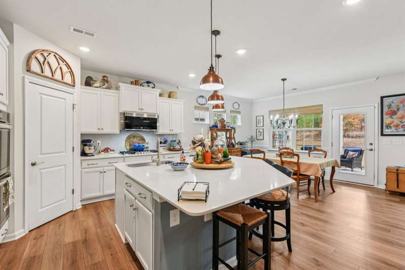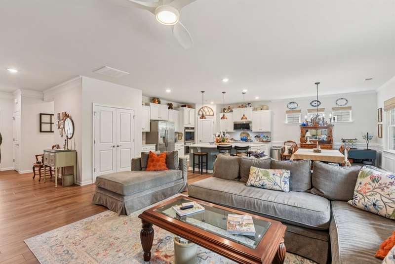 Welcome to this beautifully updated 3BR, 2.5-bath home in vibrant ?Imagery on Mt Island Lake? ? an active adult community! With seasonal water views from the rocking chair front porch and just steps away from the future marina, this one level Elmont model will truly become your forever home.Thoughtful upgrades create a turnkey living experience. The entire house features upgraded luxury vinyl plank flooring providing a cohesive, low-maintenance foundation throughout. Designer window treatments adorn every room, and remote shades add convenience and privacy in the guest room and dining area.The heart of the home shows exceptional attention to storage and style: a custom kitchen storage system and designer lighting in both the kitchen and dining area make daily living and entertaining effortless. Features include upgraded double wall ovens and a sizeable, pristine quartz countertop. The primary ensuite includes a custom closet organizer with built-in drawers to keep belongings neat and accessible. Two additional spaces can flex as guest rooms or serve as an office. The spacious laundry room features a utility sink.The screened-in porch includes a ceiling fan plus privacy sunshades for relaxing outdoors while taking in the beautifully landscaped yard - an entertainer's dream with a large paver patio, built-in planters, and a sitting wall surrounded by thoughtful landscaping that enhances privacy. The remote-controlled awning stretches out over the patio for ease and comfort.Imagery residents enjoy front and back lawn maintenance and the use of outstanding amenities cabins featuring a well-appointed library, textile/art studio, pottery studio and dog park. Care to be a little more active? Take a dip in the heated resort style pool open from May through October! Try your hand at pickle-ball/tennis on lighted courts! The fitness center offers free weights, exercise equipment and a separate studio for yoga, Pilates and even Zumba! Walk the wooded trails to enjoy nature lake-side! There are also DOZENS of interest clubs in this vibrant community! Please take a brochure to learn more!Are you an active adult under age 55? That's cool, too!